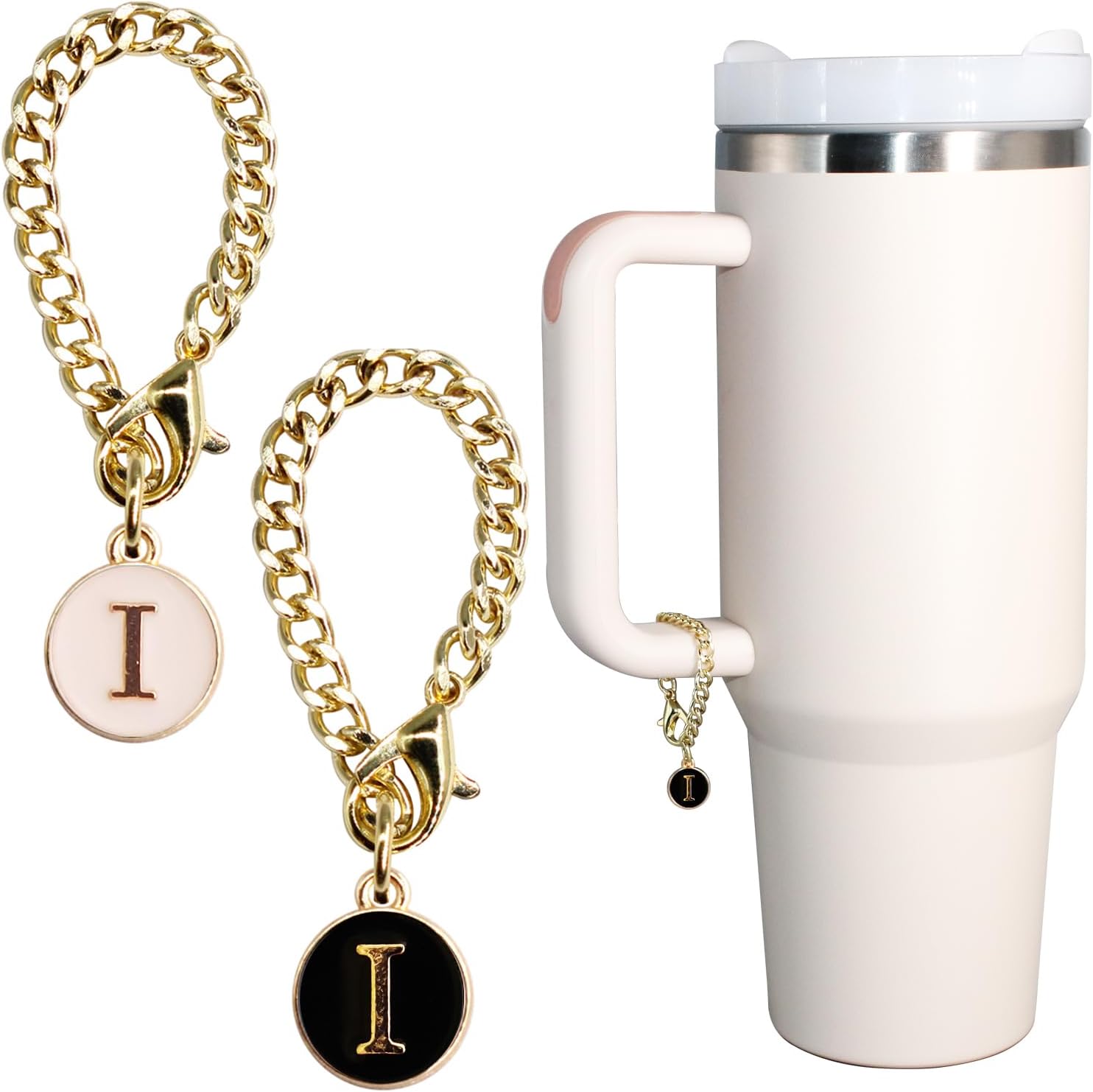 • Each package includes 2pcs chains with letter charms for Stanley tumblers. The total length of the letter charm chain is 4.5" long.