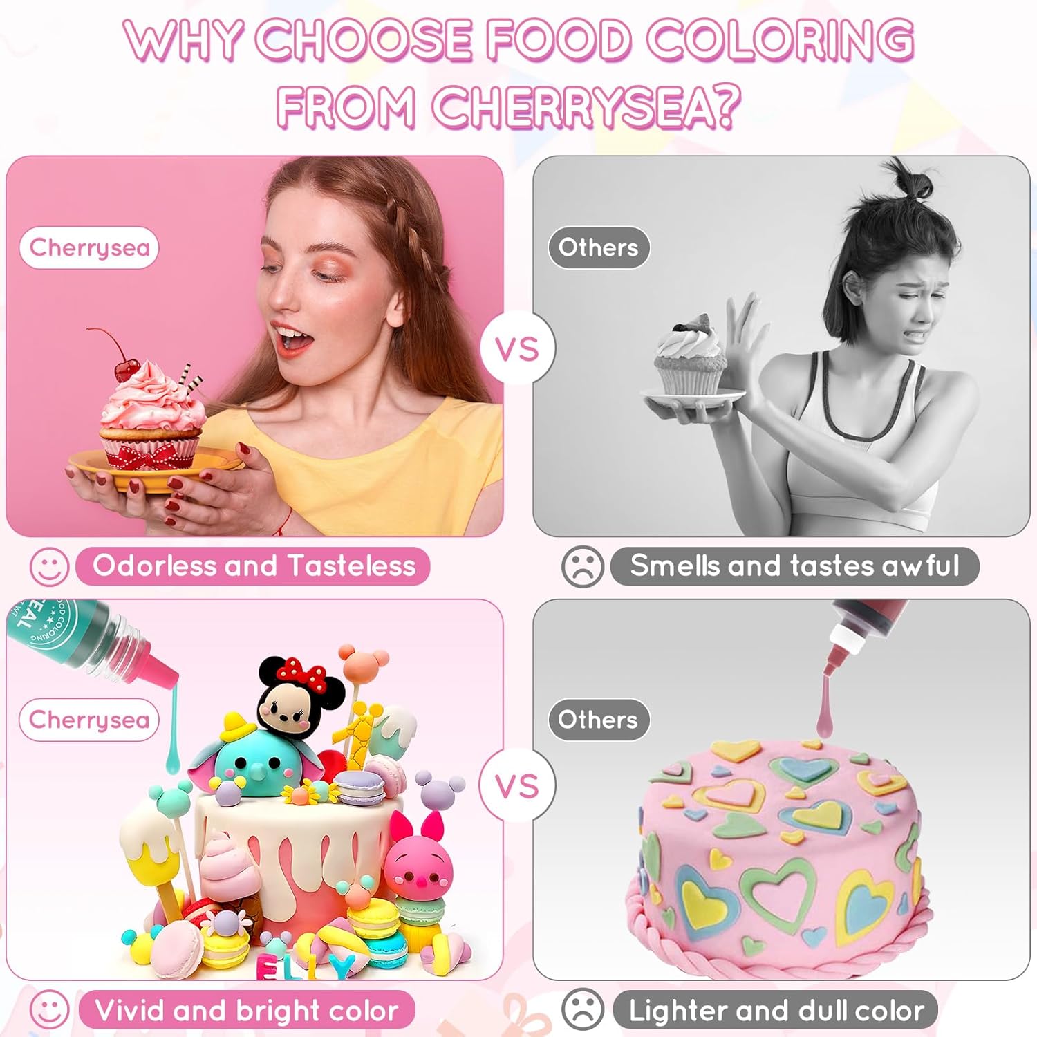 Food Coloring Liquid 10 Colors for Baking,Cherrysea Food Grade Cake Food Coloring Set for Halloween,Fondant,Cookies,Icing,Easter Egg Dessert Decorating Making DIY Supplies Kit- 0.25 Fl. oz (6