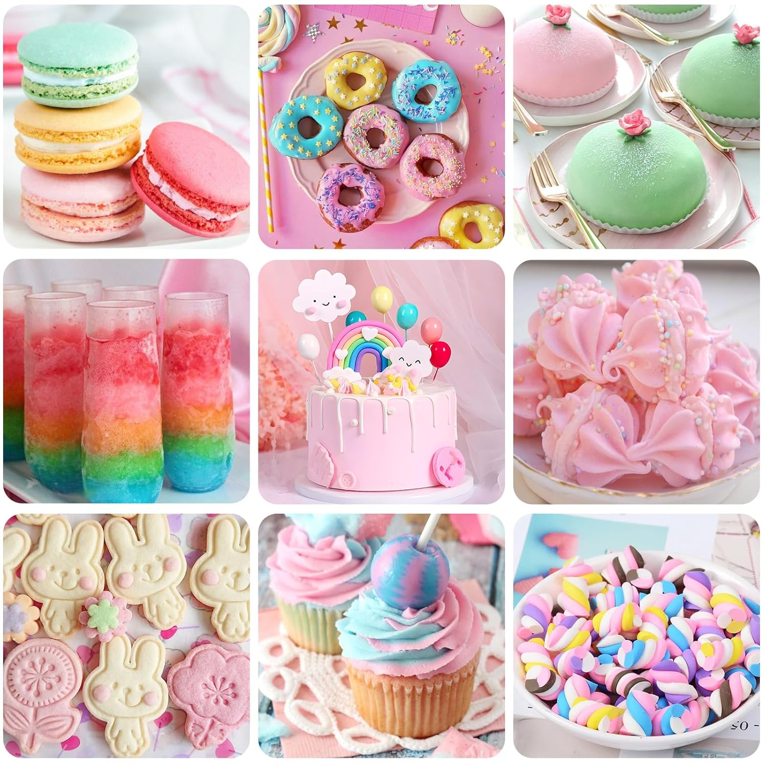 - Strong Tinting Strength - With upgraded highly concentrated formula water based texture,a little of these colors go a long way.The finished food is bright and rich in color, uniform and delicate.What’s more, the liquid food color will not evaporate with moisture when heated or frozen. This food coloring also can be mixed together to create new shades