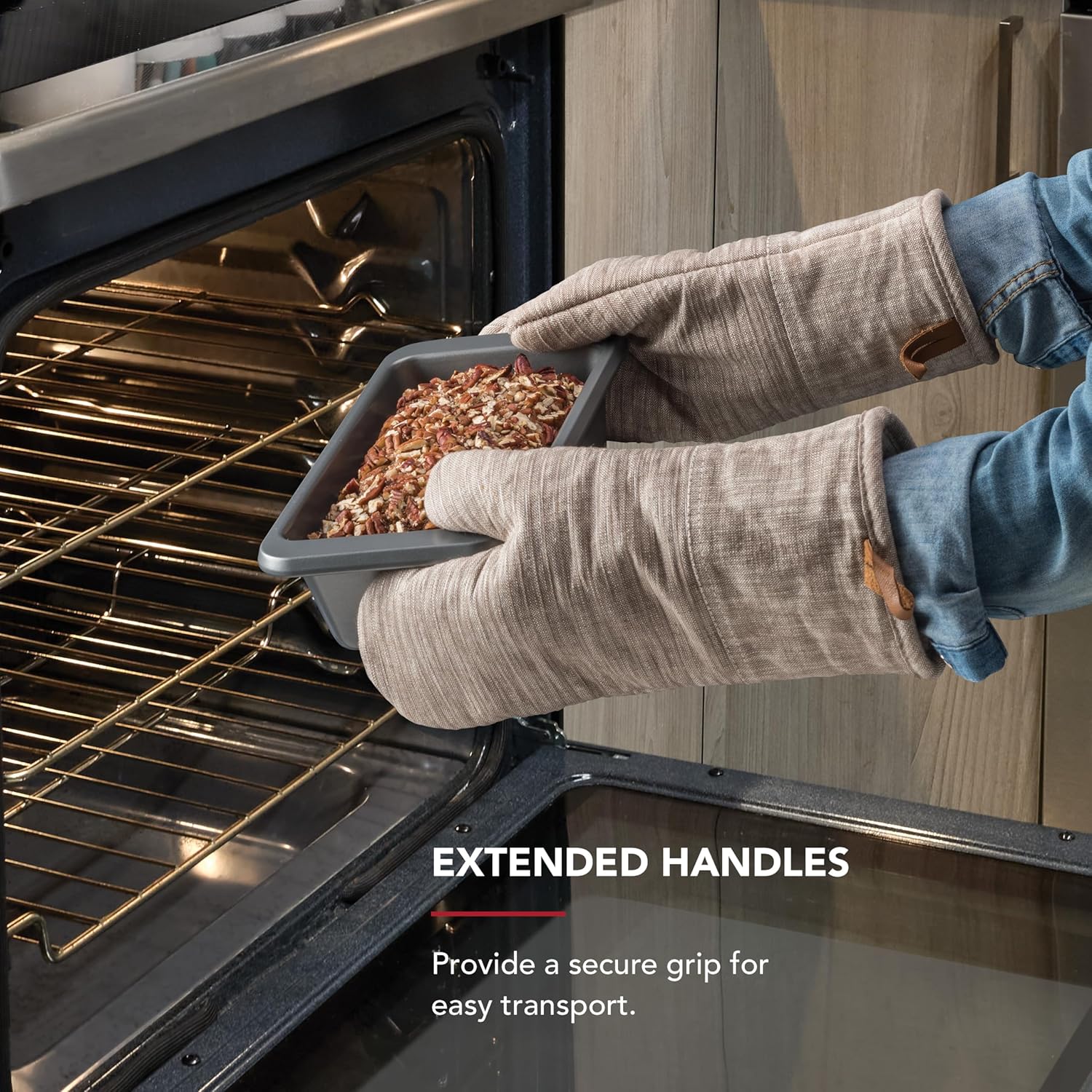 - EXTENDED HANDLES: provide a secure grip for easy transport, making transferring pan in and out of the oven safer and simpler, even when wearing pot holders