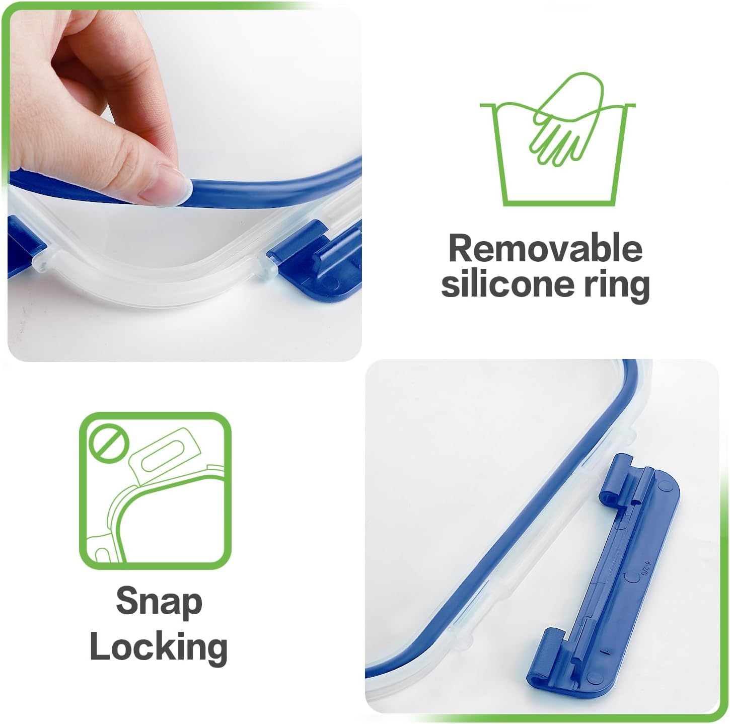 - [BPA Free & Easy to Clean] BPA-Free plastic locking lid is safe as well as leakproof. Crystal clear borosilicate glass is easy to clean without absorbing stains or smells. They are dishwasher safe to instead of hand washing. Also the silicone seal is removable for your to clean and dry it. In order to prevent seal sticking to the containers, please must wash the lids and containers before put them away