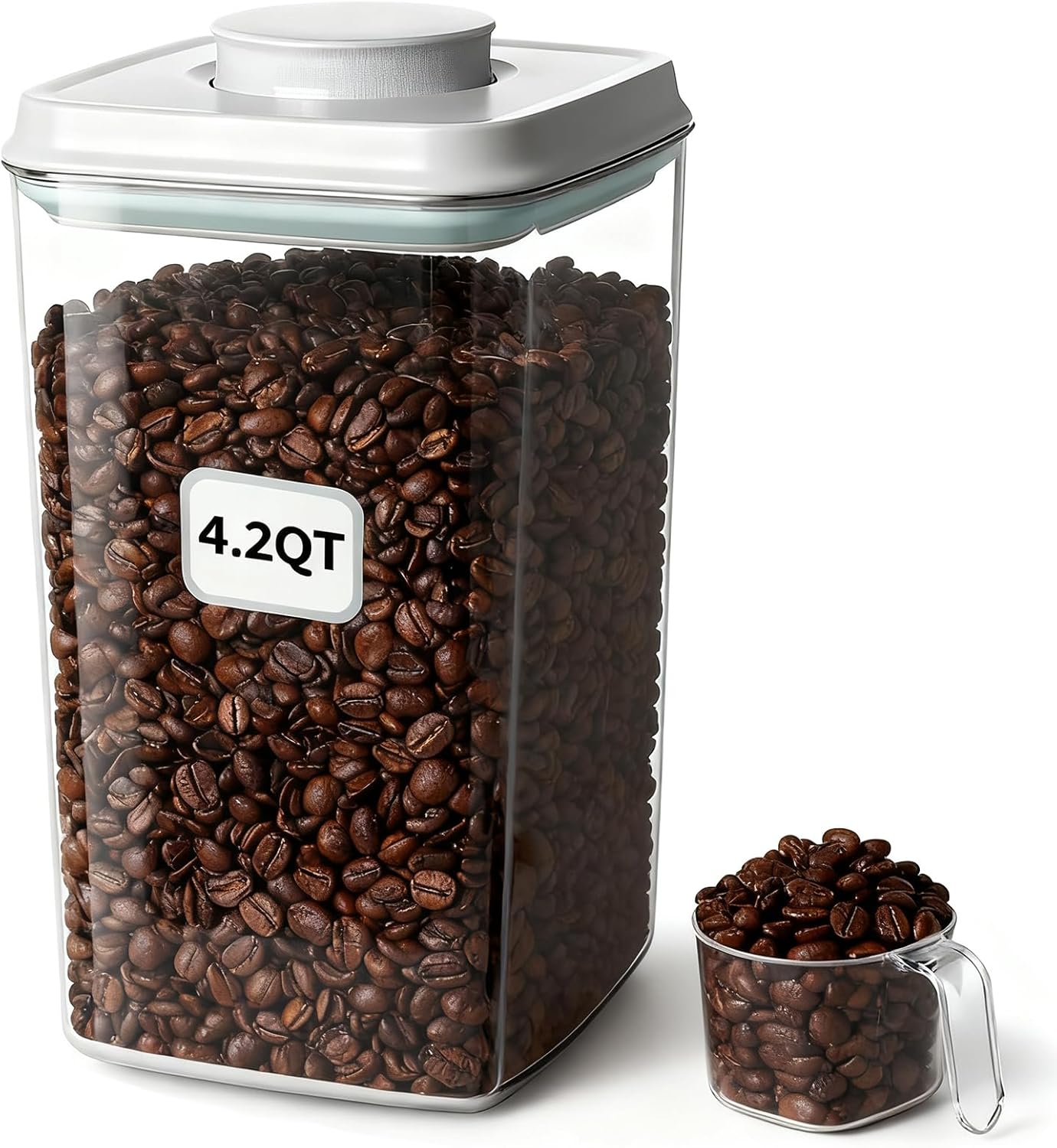Large Pop Airtight Food Storage Containers Set with Lids, 4.2Qt Food Containers with Scoop, Kitchen Pantry Organization and Storage, BPA Free Stackable Cereal Container