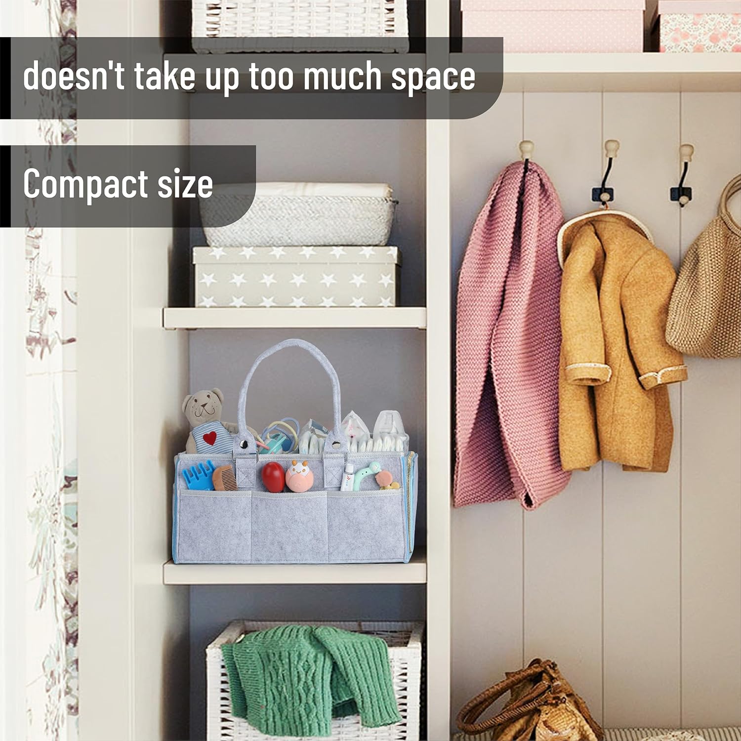- The stylish design, complemented by sturdy handles, makes it easy to carry and blends seamlessly with any nursery decor.