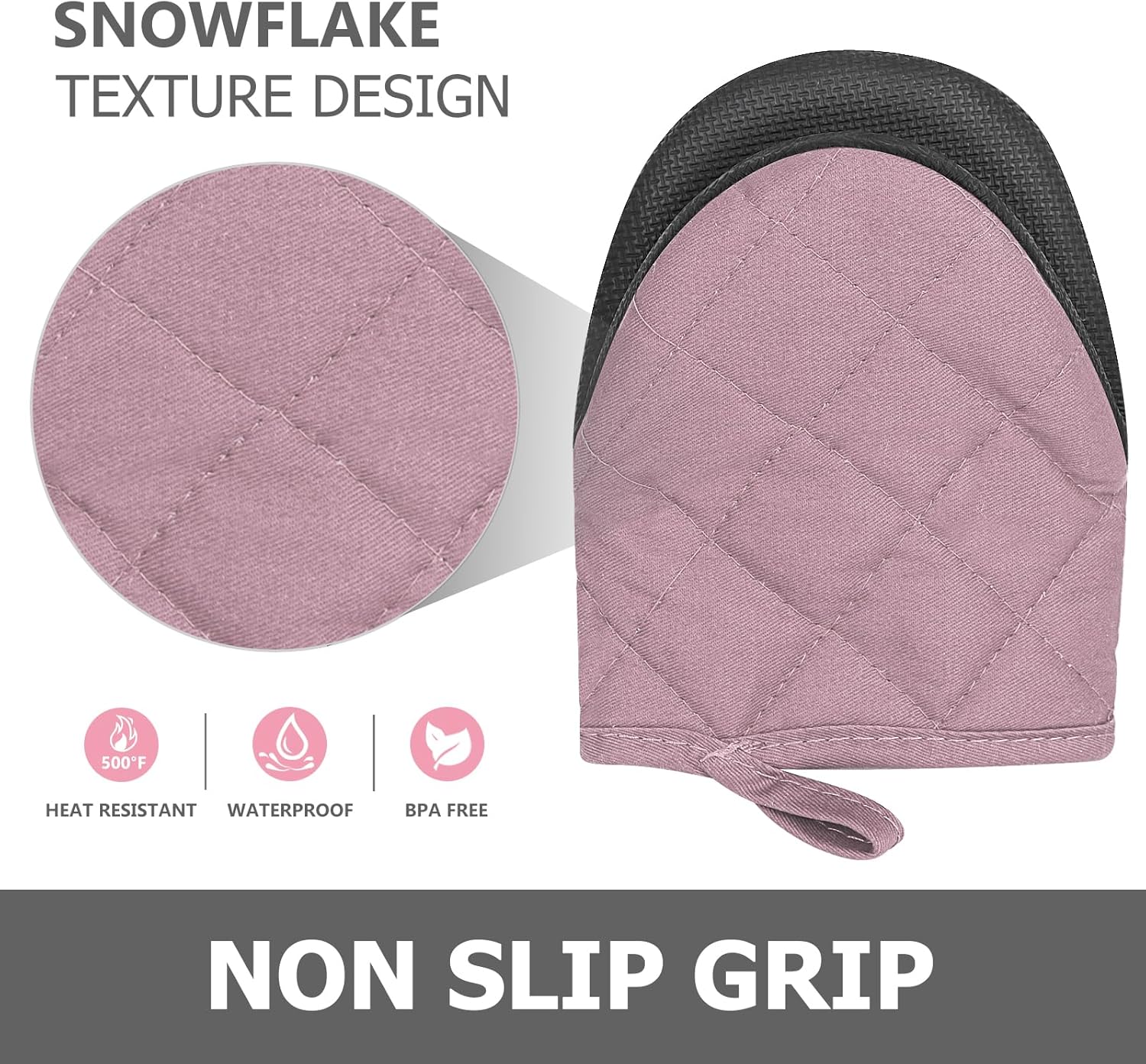 1 Pair Short Oven Mitts - Silicone Kitchen Oven Gloves High Heat Resistant 500℉, Mini Oven Mits with Non-Slip Grip Surfaces and Hanging Loop for BBQ, Baking, Cooking and Grilling (Pink)