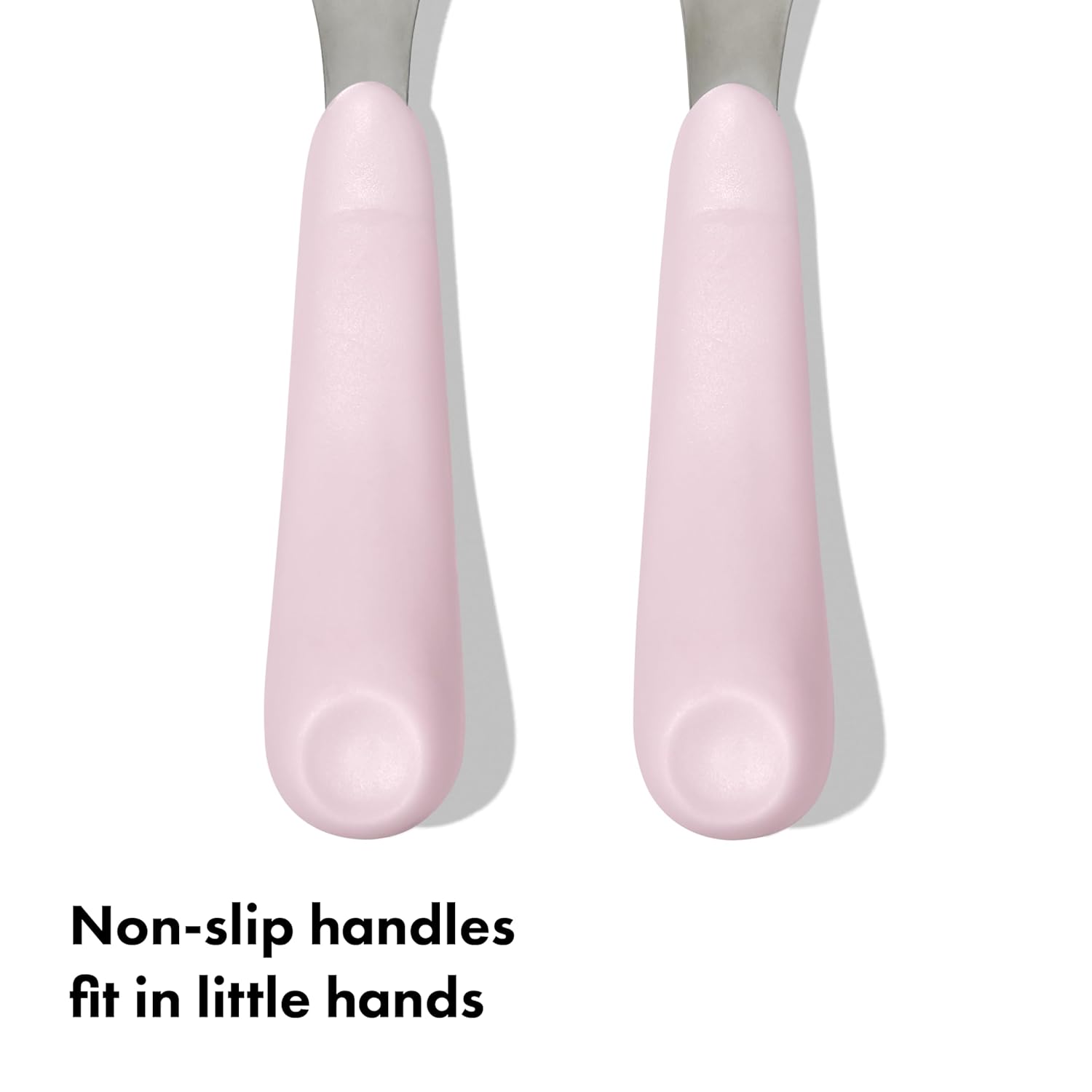 - Curved, non-slip handles are weighted and easy for little ones to hold
