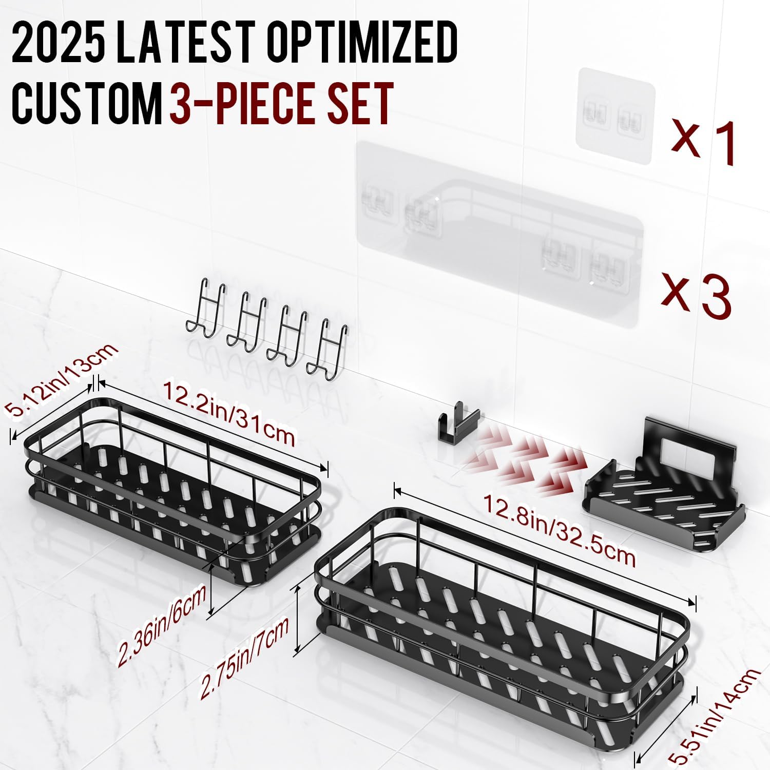 Large Capacity Shower Caddy, Heavy-Duty Adhesive Shower Organizers with Custom Aesthetic Design Soap, No Drilling Corner Shower Shelves, 5 Hooks for Bathroom Accessories, 3 Pack
