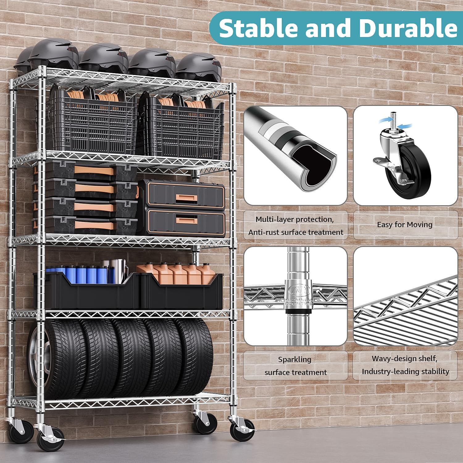 5-Shelf Storage Shelves,Wire Shelving Heavy Duty Metal Storage Shelving Unit Adjustable Garage Shelving Rack Pantry Kitchen (Chrome, 5 Tier,17.7" D x 47.2" W x 76.7" H)