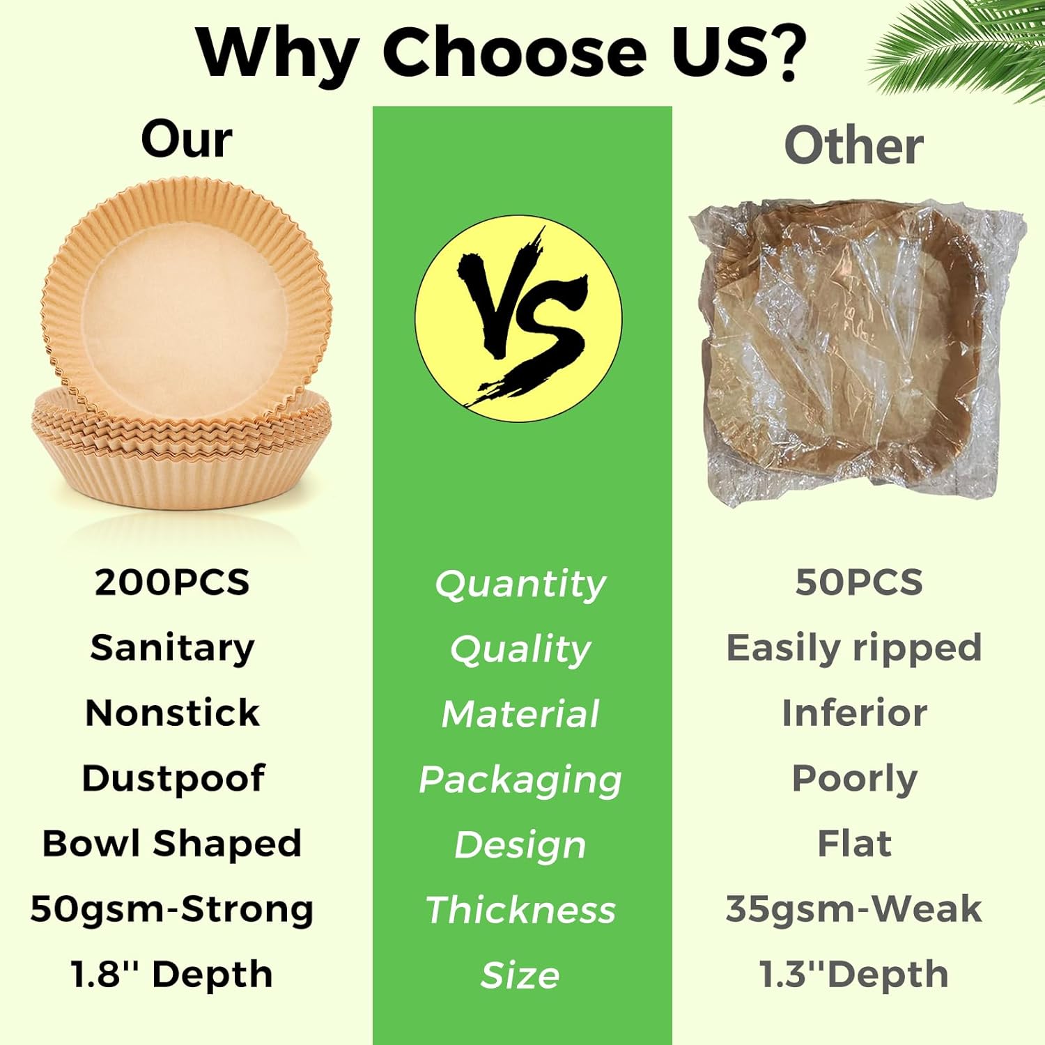 - Widely Used: These disposable air fryer parchment liners are great for baking, roasting, frying or serving food, lightweight and practical. Suitable for air fryers, microwave, ovens, steamers, etc. Just throw away the parchment liners after use.