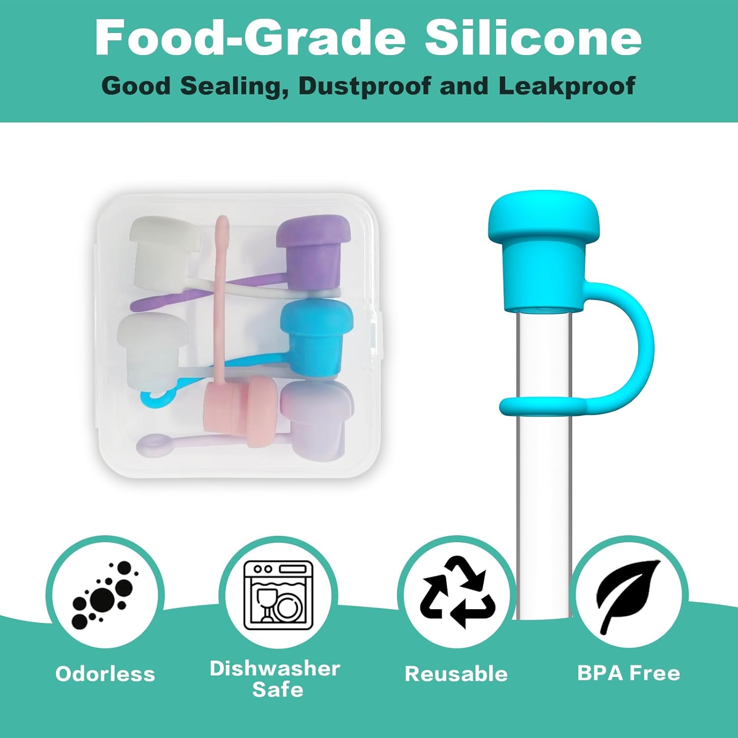 - Food-Grade Silicone: Straw Cover was made of the 100% food grade silicone material. BPA free, durable, safe and non-toxic, reusable. Hand washable and dishwasher safe.