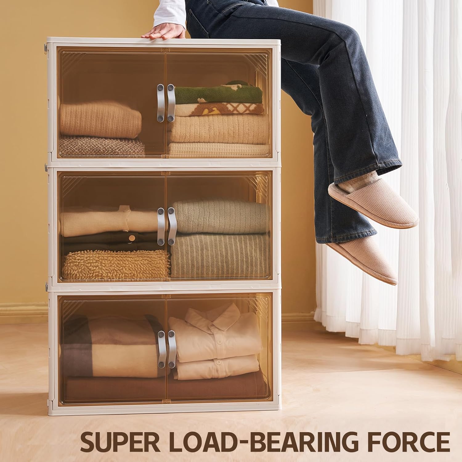 - 【Foldable & Tools-Free】The collapsible storage bins are easy to assemble without tools and snap the sections together in just 10 seconds. When not in use, the storage drawers can be folded up and placed in a small gap in your car or room to fully save space.