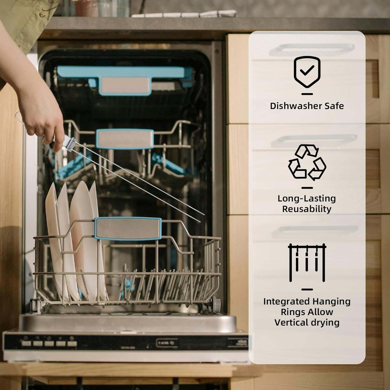 - 👍【Easy to Clean and Reusable】The smooth surface of the skewers for grilling ensures that food residue does not stick to them, greatly reducing the hassle of cleaning. After each use, simply put these kebab skewers in warm water, wash them by hand with a gentle cleaner or put them in the dishwasher, wipe off the water, and place them in a dry place. They will look brand new.