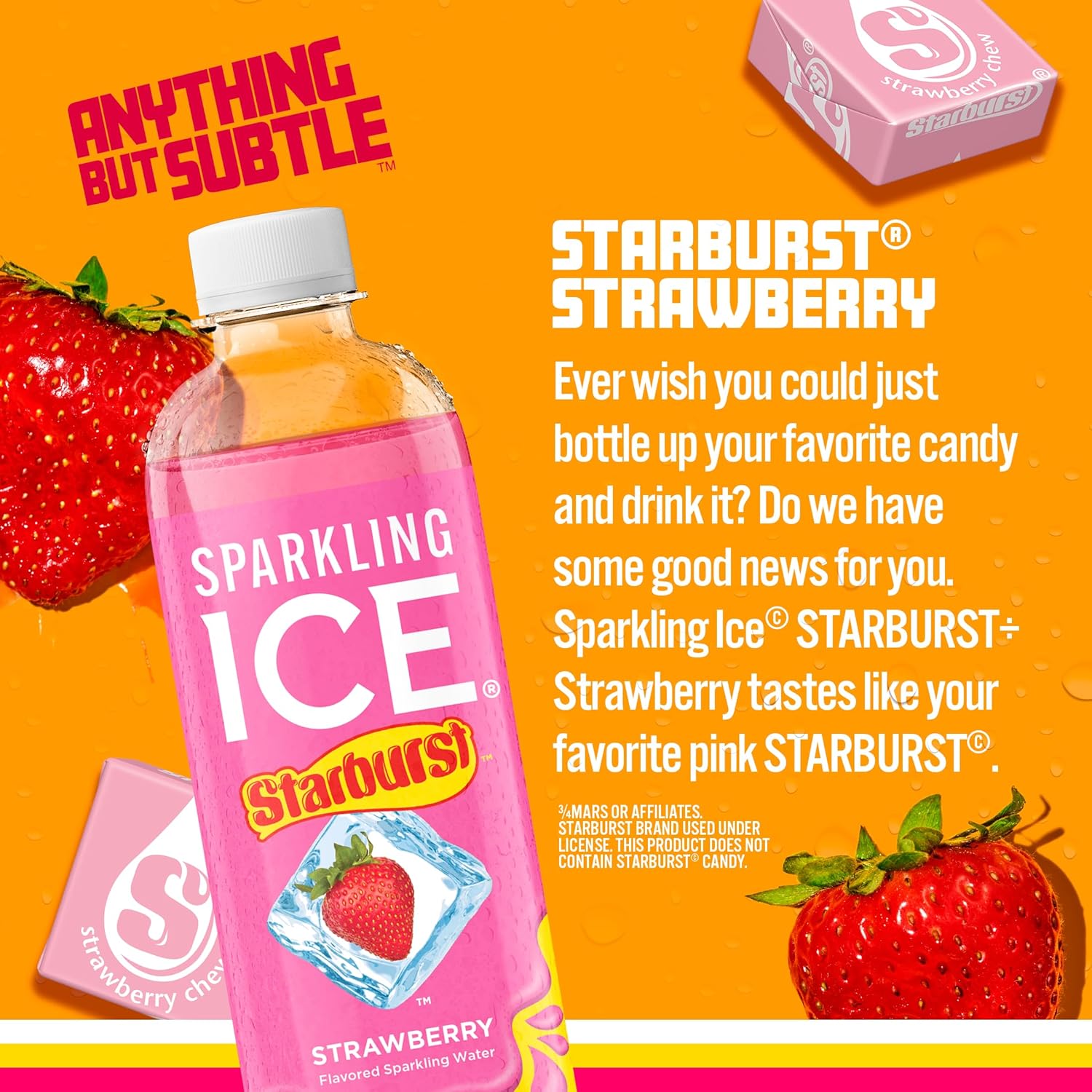 - BURSTING WITH FLAVOR Flavor and fizz had a love child. Introducing Sparkling Ice STARBURST Strawberry. 6 unexplainibly delicious flavors. 0 sugar or nasties.