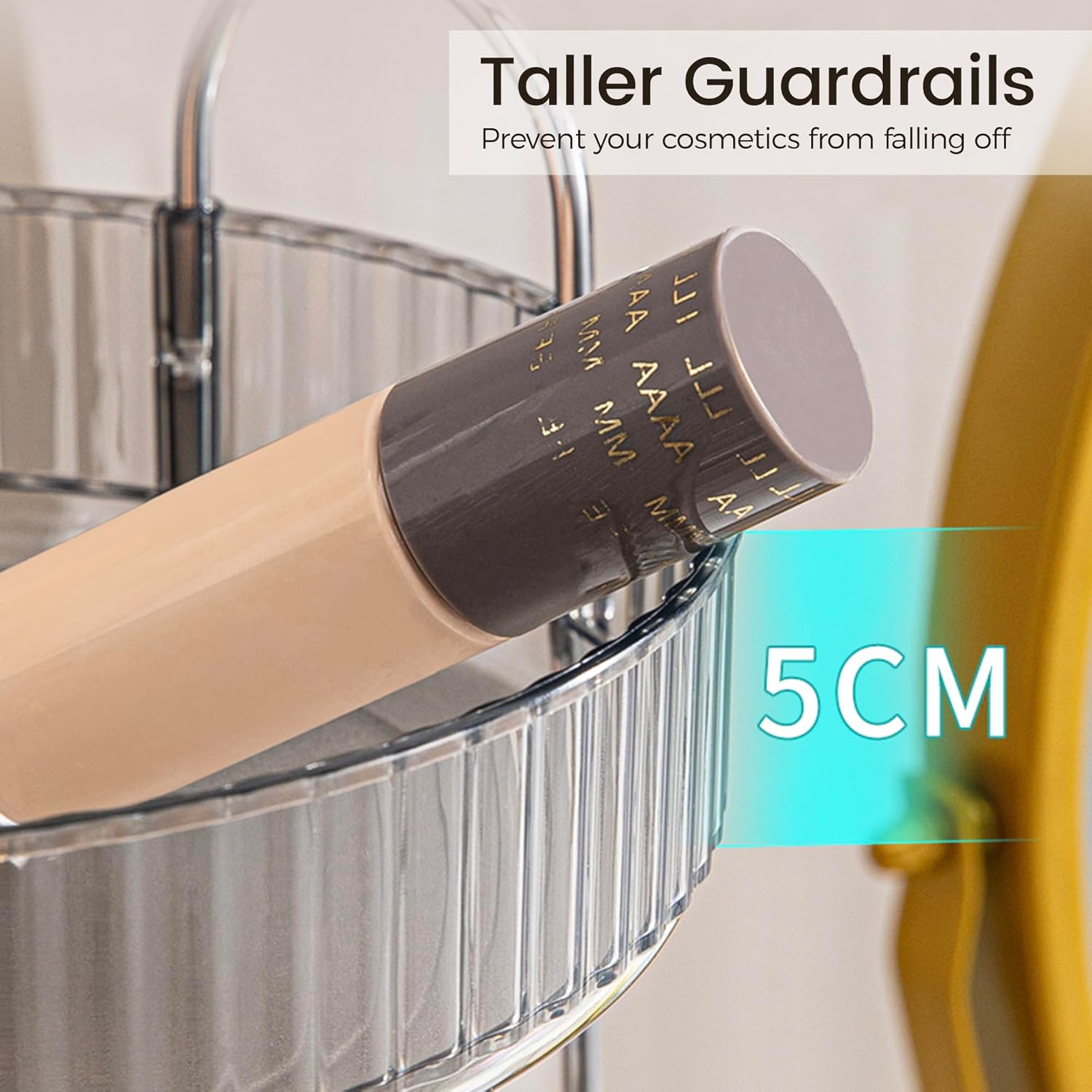 - 👑【360°Rotating Design】Unlike conventional vanity makeup organizers, this innovative rotating organizer boasts a seamless 360-degree rotation capability. With just a gentle rotation, you can effortlessly access all your makeup essentials, making the selection process a breeze. The perfume organizer's high tray edge are thoughtfully designed to prevent any messy spills.