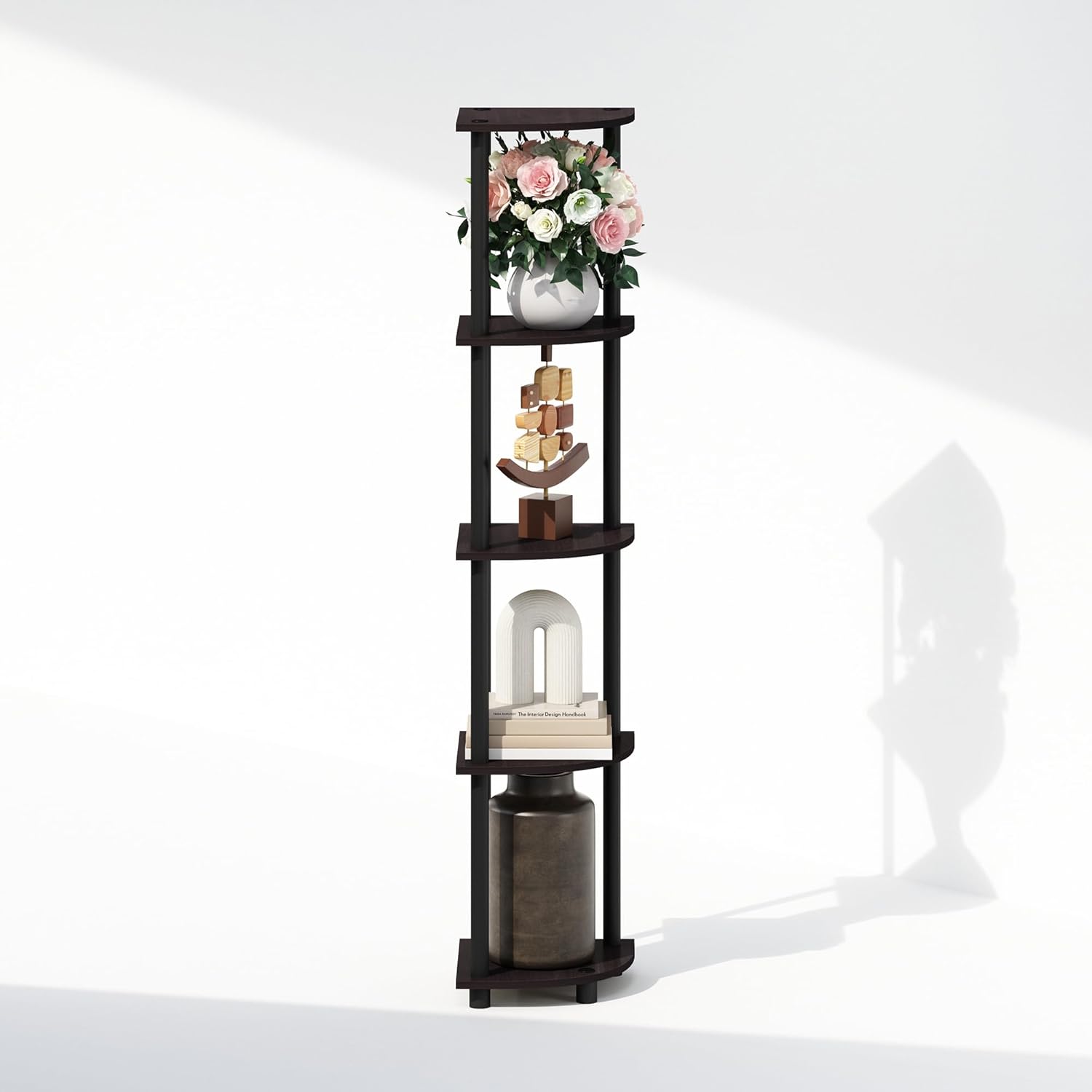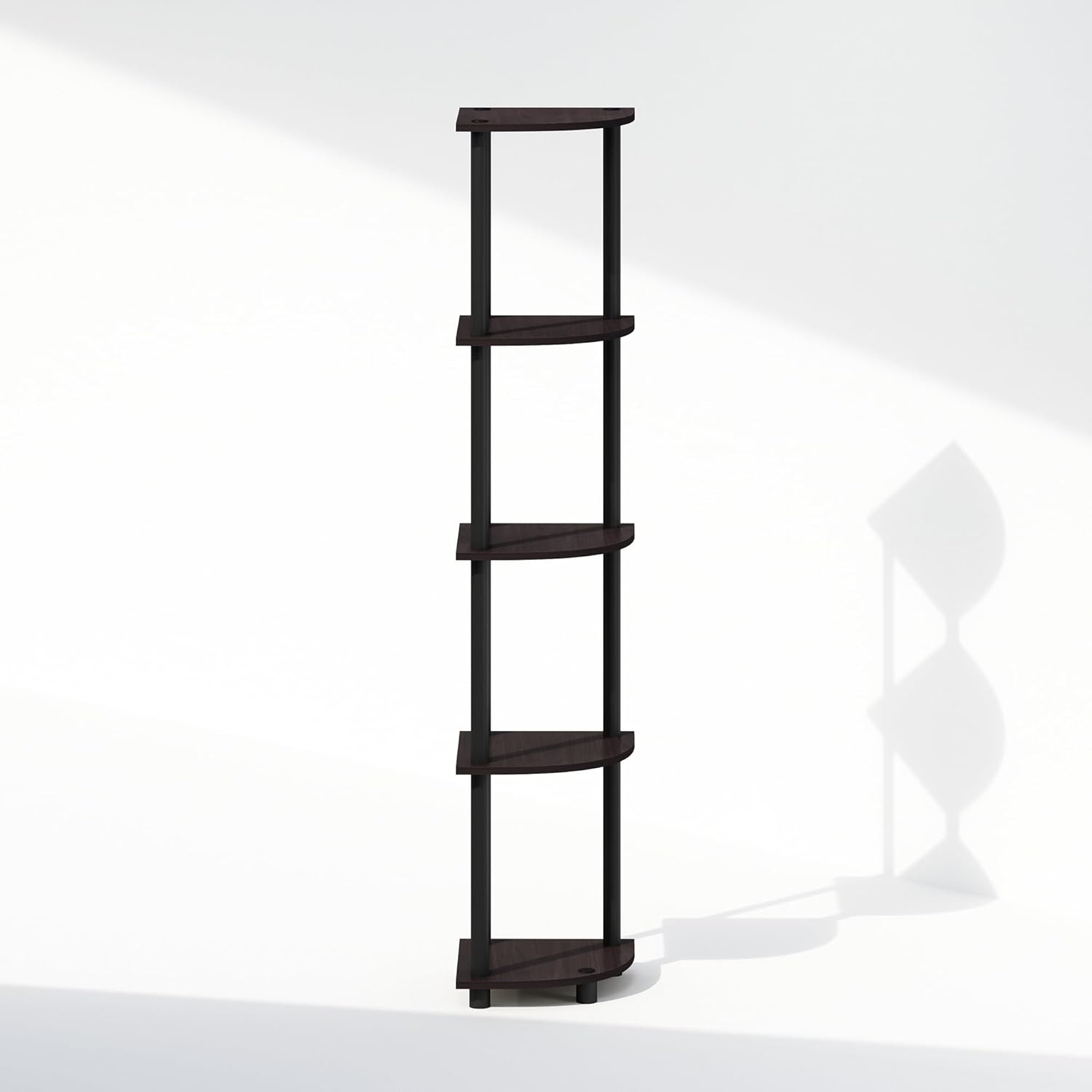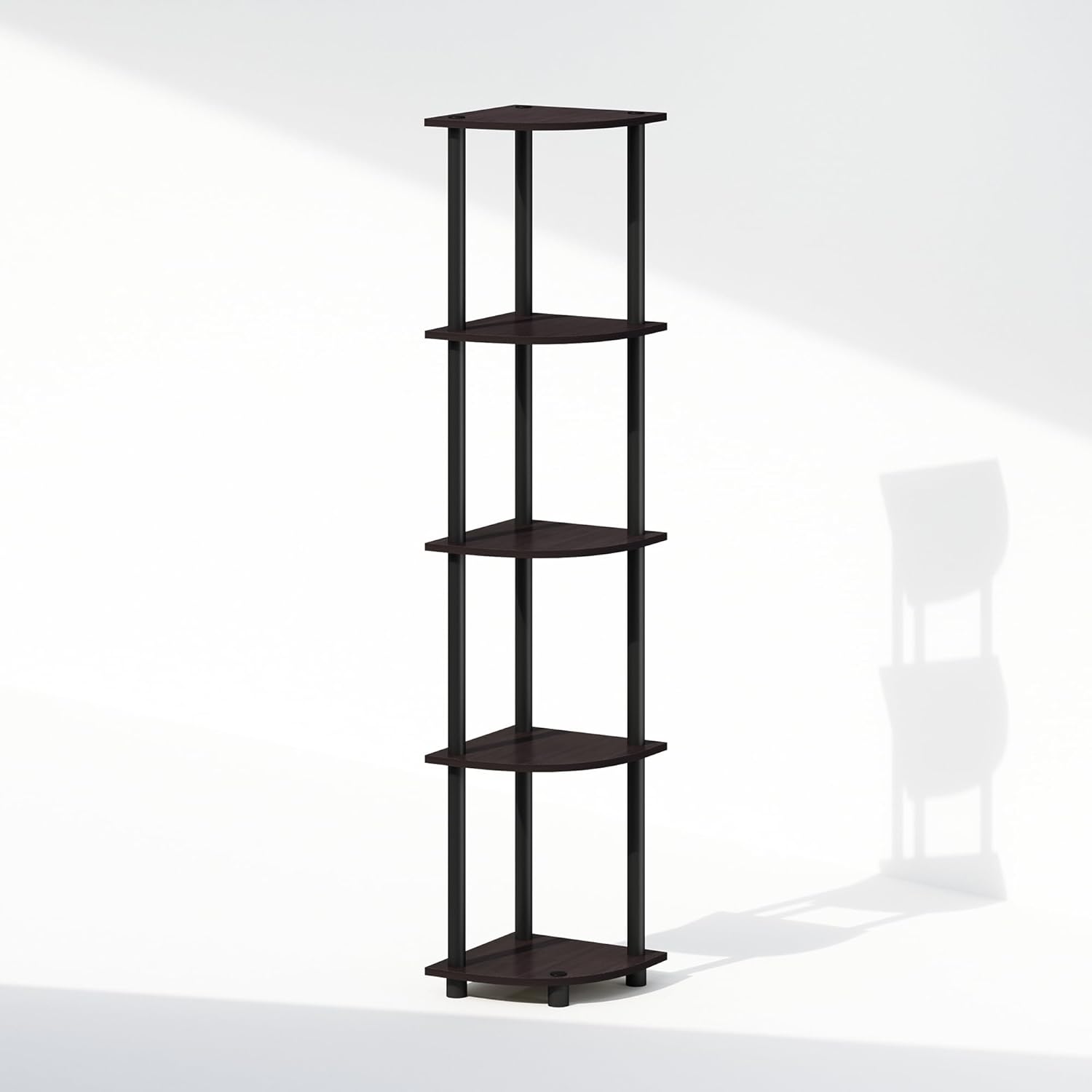 Furinno Turn-N-Tube Corner Shelf, 5-Tier Corner Display Rack, Shelving Unit, for Organization and Storage, Living Room, Home Office, Garage, Bedroom, Dark Walnut