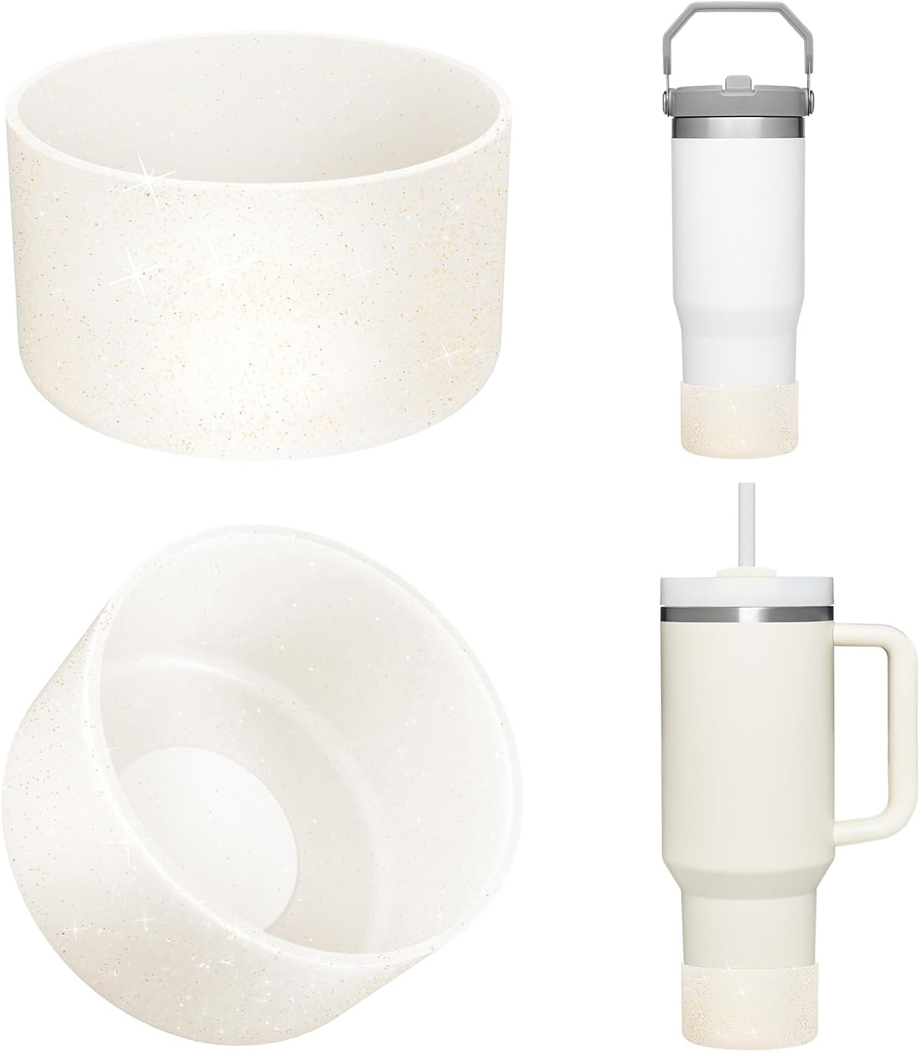 Upgrade 2PCS Protective Silicone Boot Bumper for Stanley Quencher Adventure 40oz 30oz IceFlow 20oz 30oz Tumbler, Water Bottle Bottom Sleeve Cover Accessories for Stanley Mug Cup(Glitter Golden)