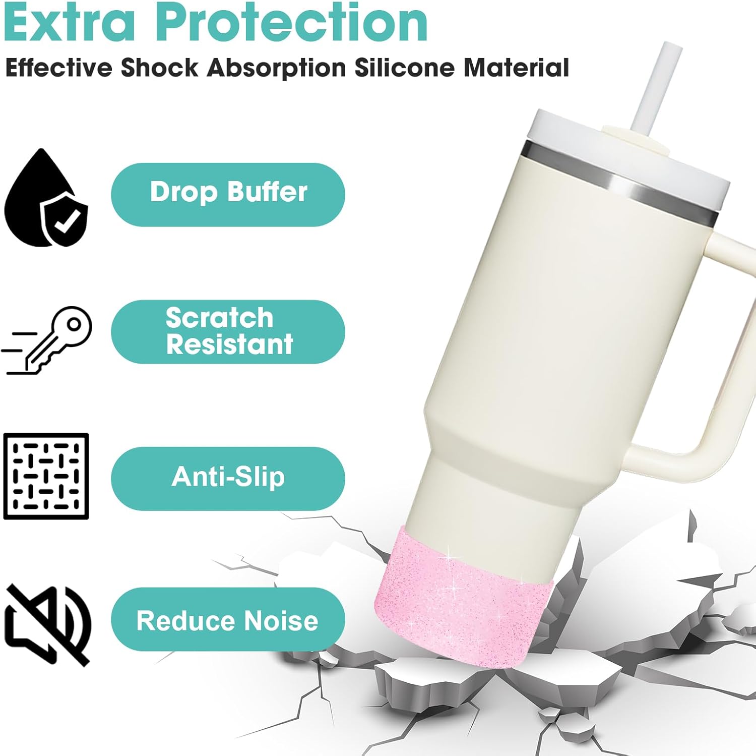 Upgrade 2PCS Protective Silicone Boot Bumper for Stanley Quencher Adventure 40oz 30oz IceFlow 20oz 30oz Tumbler, Water Bottle Bottom Sleeve Cover Accessories for Stanley Mug Cup(Glitter Pink)