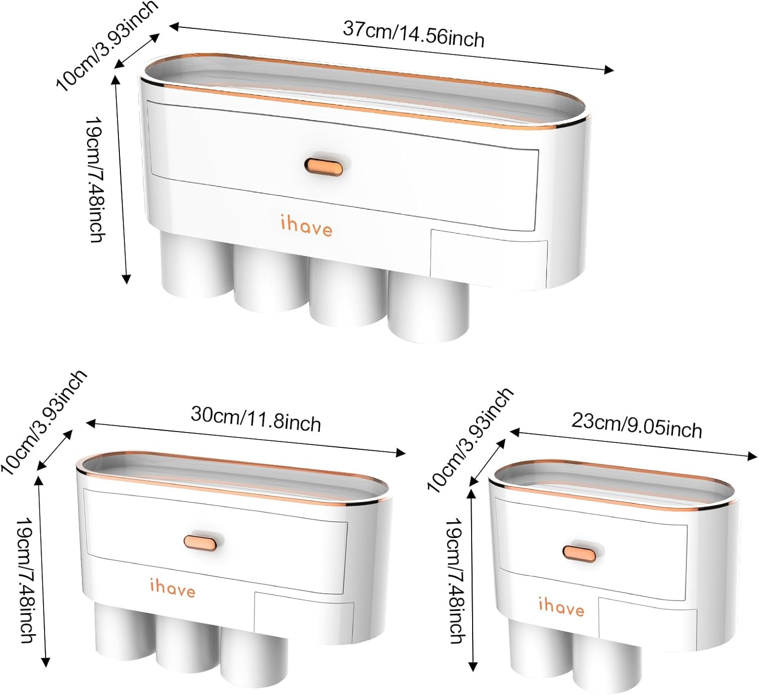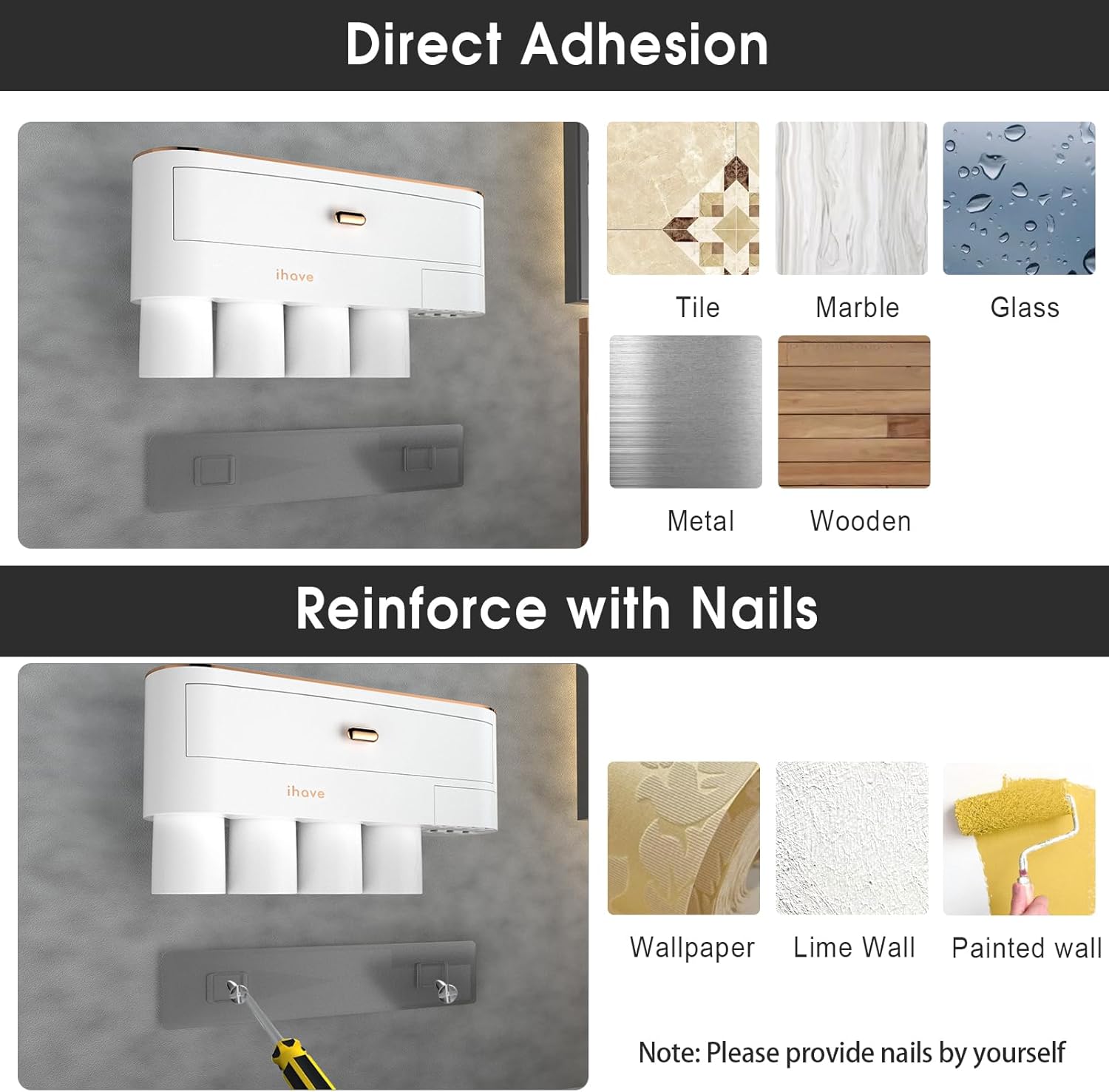 iHave Toothbrush Holders for Bathrooms - Upgrade Wall Mounted Toothbrush Holder with Toothpaste Dispenser - 4 Cups