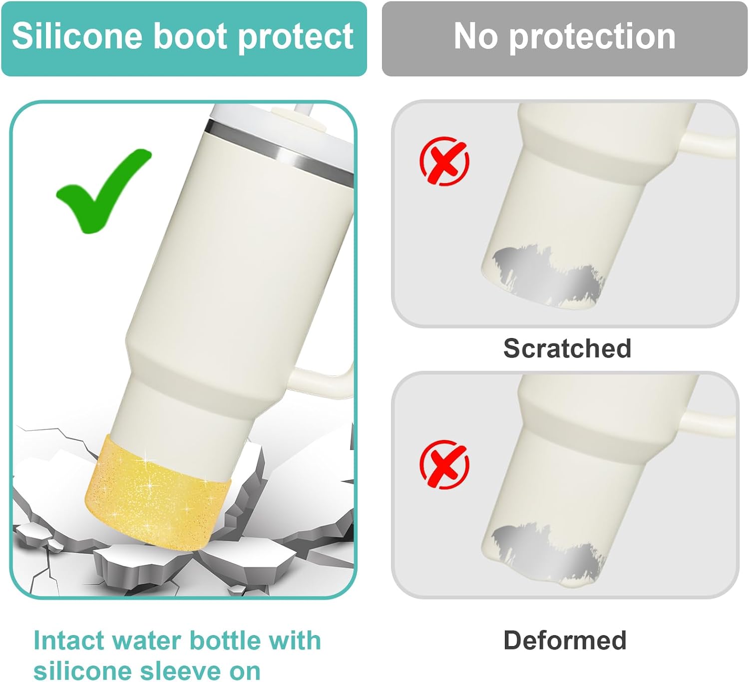 - 【Excellent Protection】Still worried about broken, scratched bottoms of your favorite stainless steel water bottles? Or embarrassed by the clinking sound the bottle makes on the table? This silicone sleeve for Stanley can effectively protect the bottom of the bottle from depression, scratch, skid resistance and noise.