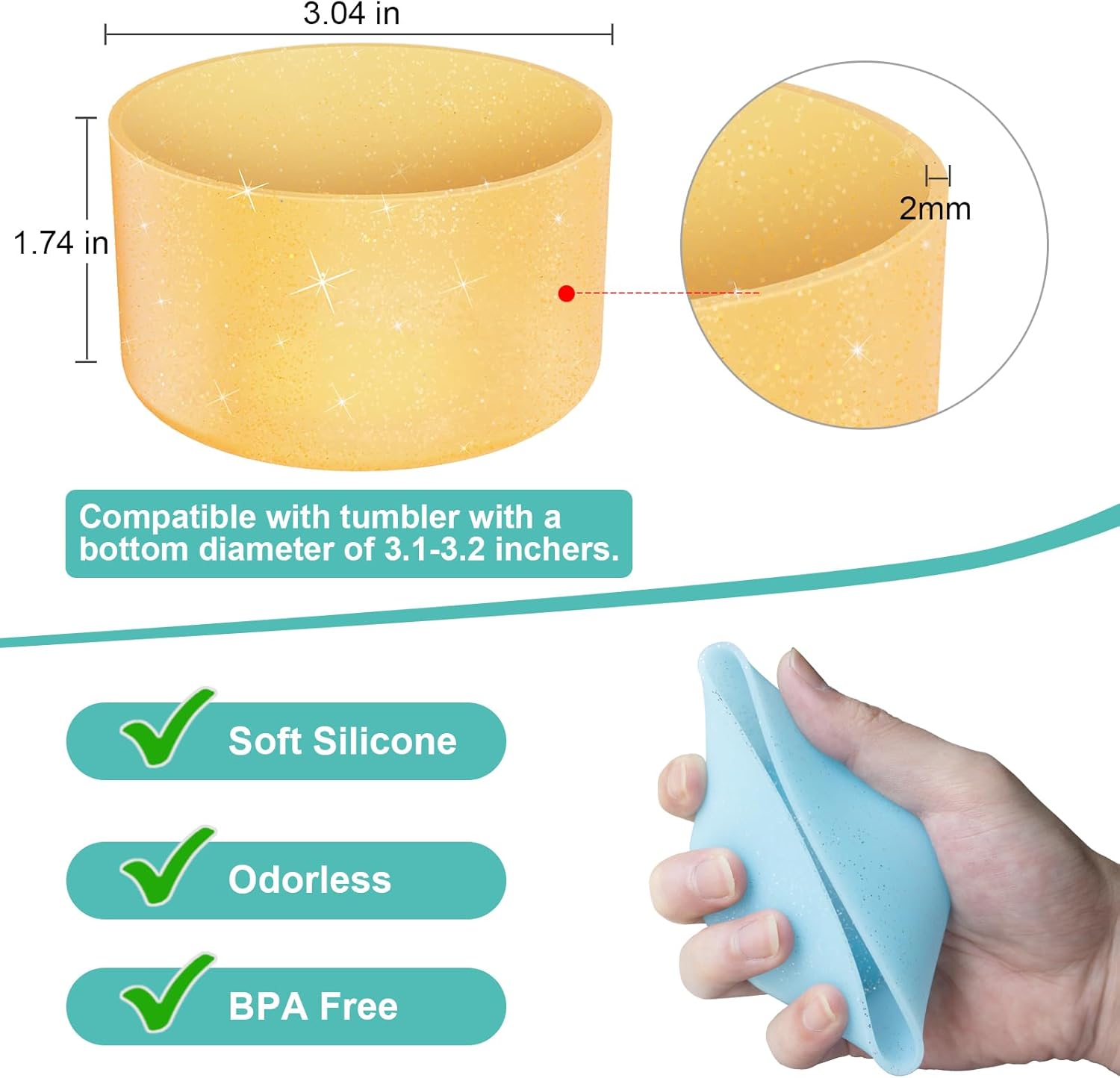 Upgrade 2PCS Protective Silicone Boot Bumper for Stanley Quencher Adventure 40oz 30oz IceFlow 20oz 30oz Tumbler, Water Bottle Bottom Sleeve Cover Accessories for Stanley Mug Cup(Glitter Orange)