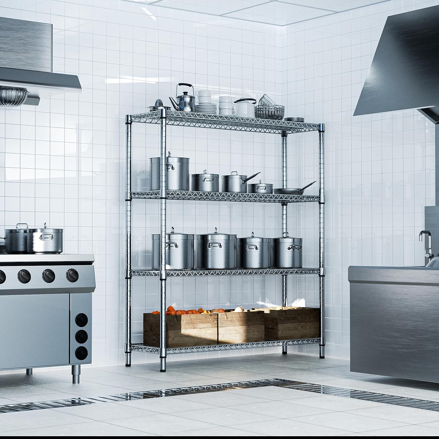 1760 LBs 4 Tier Storage Rack Metal Wire Shelving Unit, Storage Standing Shelf Organizer for Laundry Bathroom Kitchen Pantry Garage Utility Room, Chrome 17.7" D x 59.1" W x 70.4" H