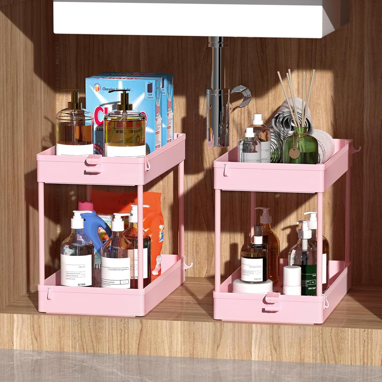 - 【Movable Storage Solution & Side Hoop】- 4 easy-glide, durable wheels make the storage cart smooth and convenient to pull in and out. And 4 side hoops provide more spaces for you storage. It also comes with 2 wheels with brakes, making the storage cart stable when stationary.