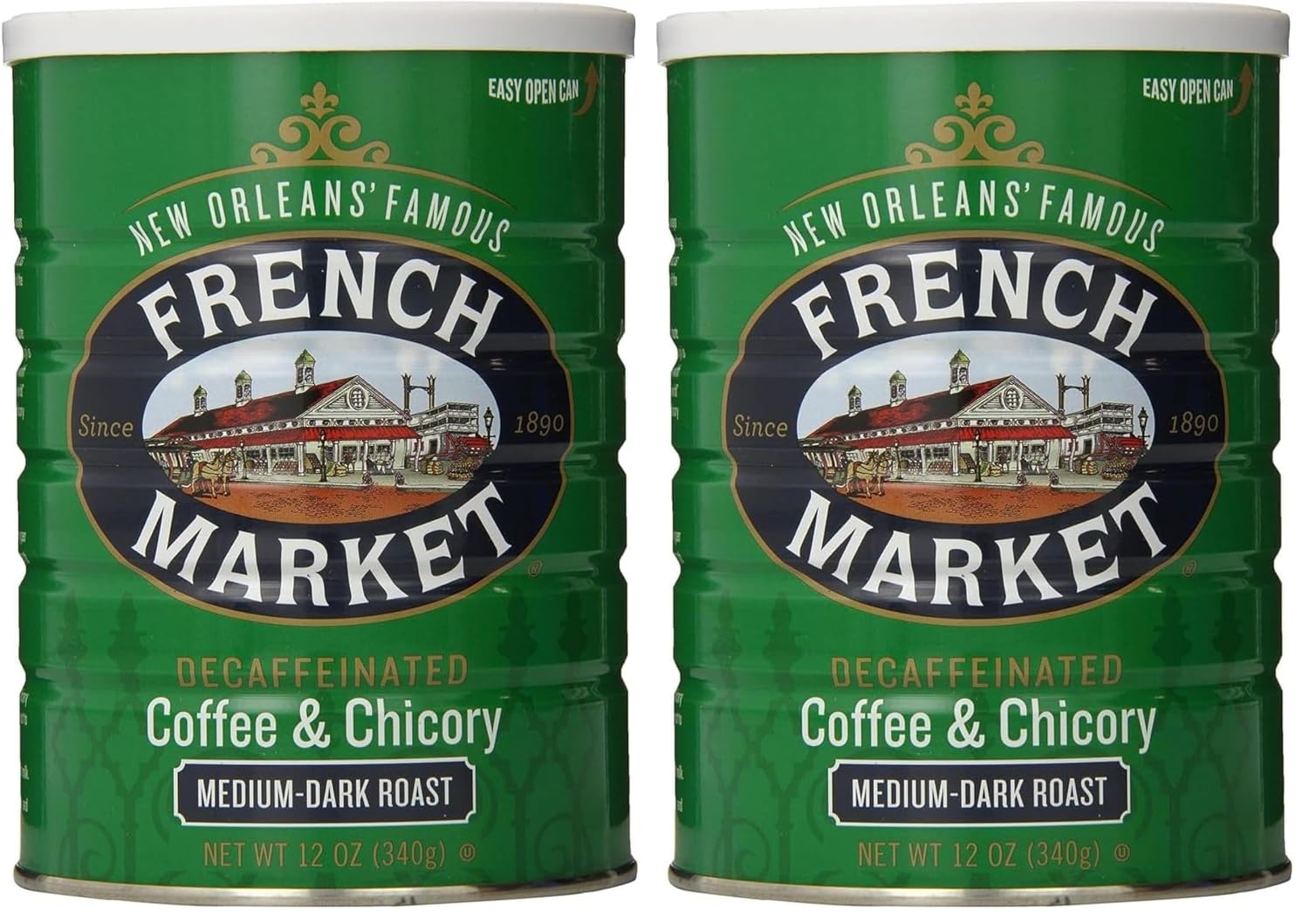 French Market Coffee & Chicory Decaffeinated Medium-Dark Roast Ground Coffee, 12oz Can (Pack of 2)