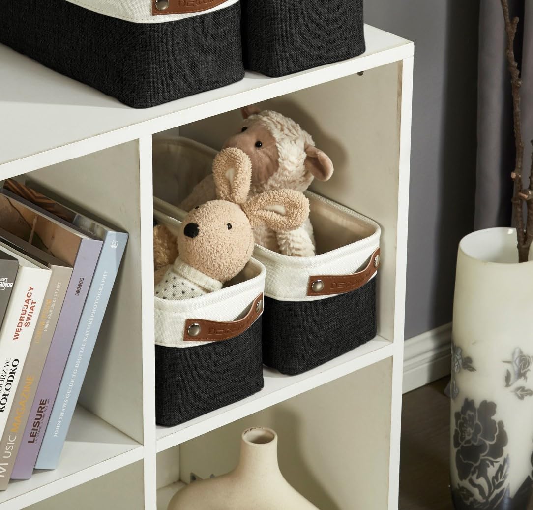 - Easy Maintenance: DECOMOMO's storage bins for shelves are collapsible for space-saving when not in use. EVA fabric baskets are easy to clean, dust the basket or spot clean with light soapy water with a soft cloth.