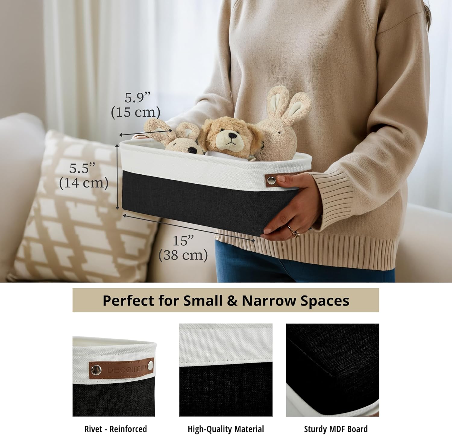 - Premium Material: DECOMOMO small storage basket is made with extra thick EVA fabric, reinforced with 2.5mm MDF fiberboard bottom and upper metal frame to keep its shape and structure.