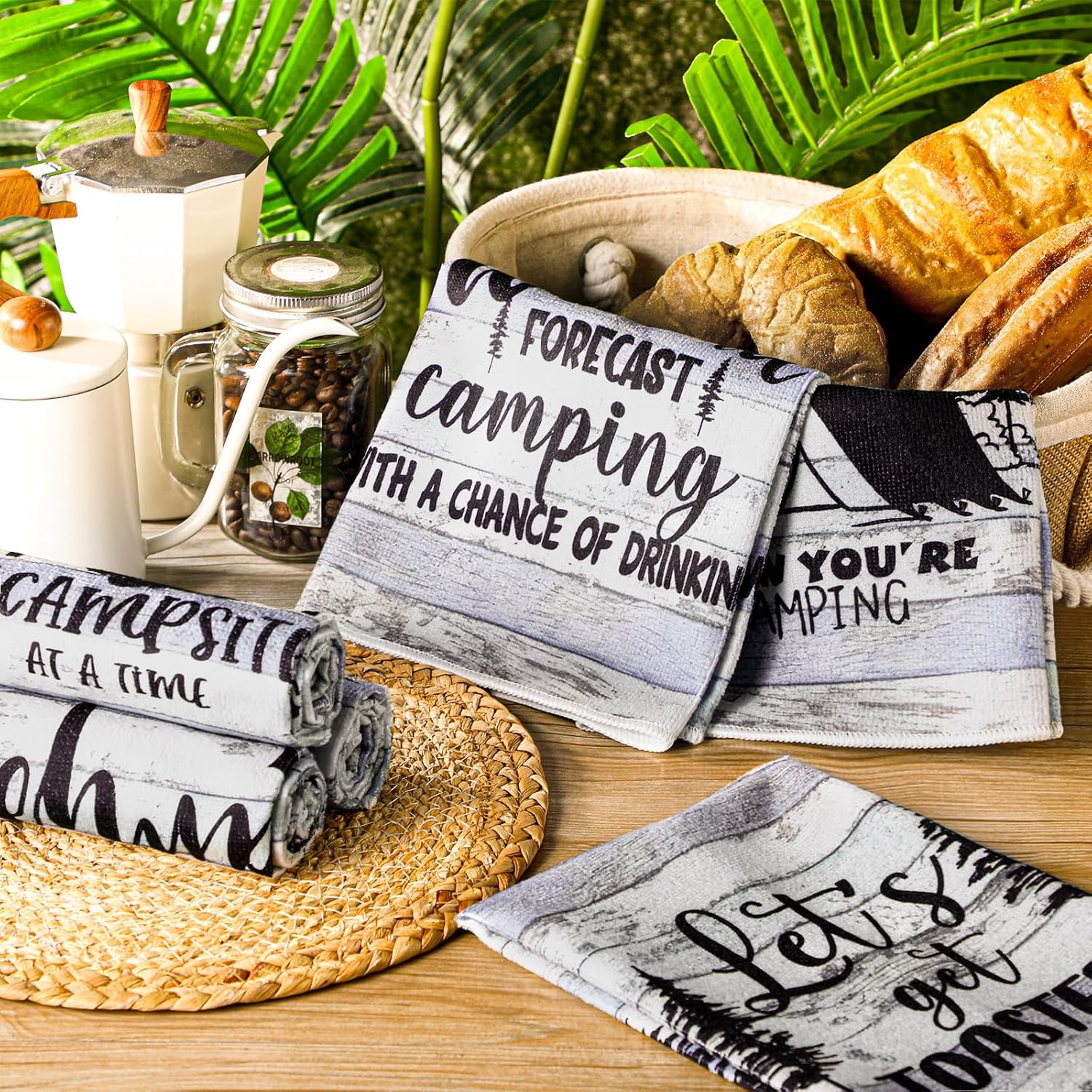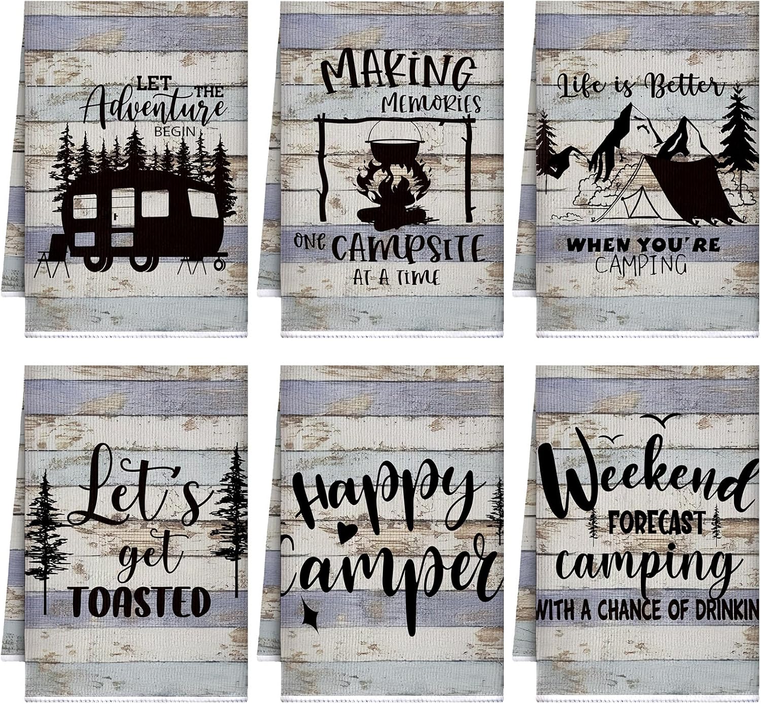 - What You Get: you will receive a total of 6 different styles of camping themed kitchen towels, with enough quantity and novelty styles to meet your daily needs for cleaning kitchen dishes, and you can also share them with your family and friend