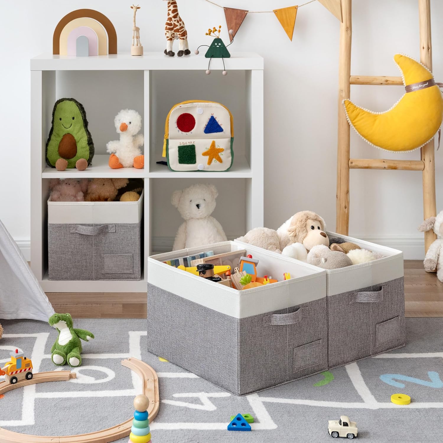 - Eco-Friendly Material - Made of textured linen-like fabric, breathable and wear-resistant, without irritating odor. Fabric boxes come in sets of 3, each measuring 15¼"L x 11¾"W x 10½"H.