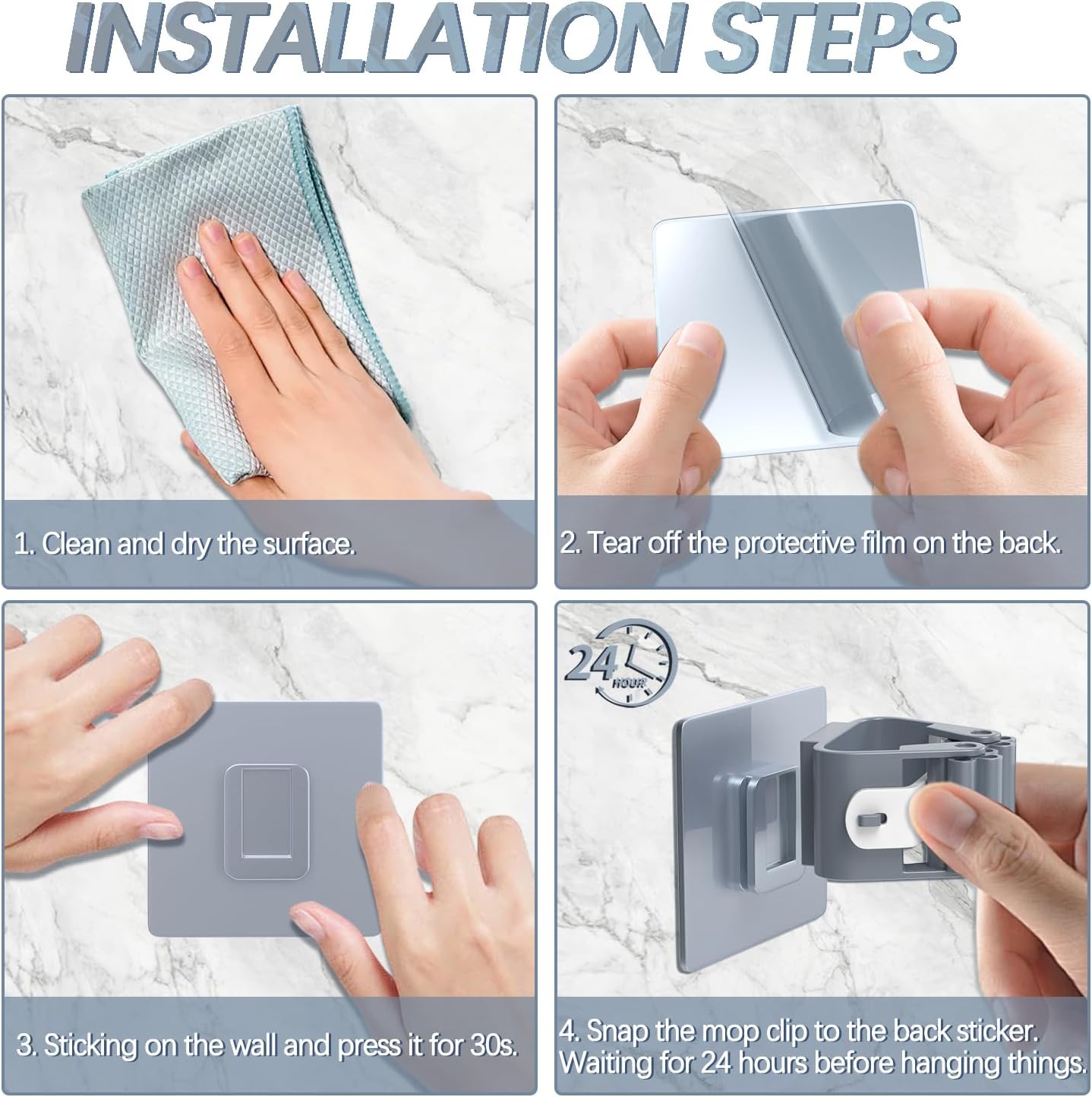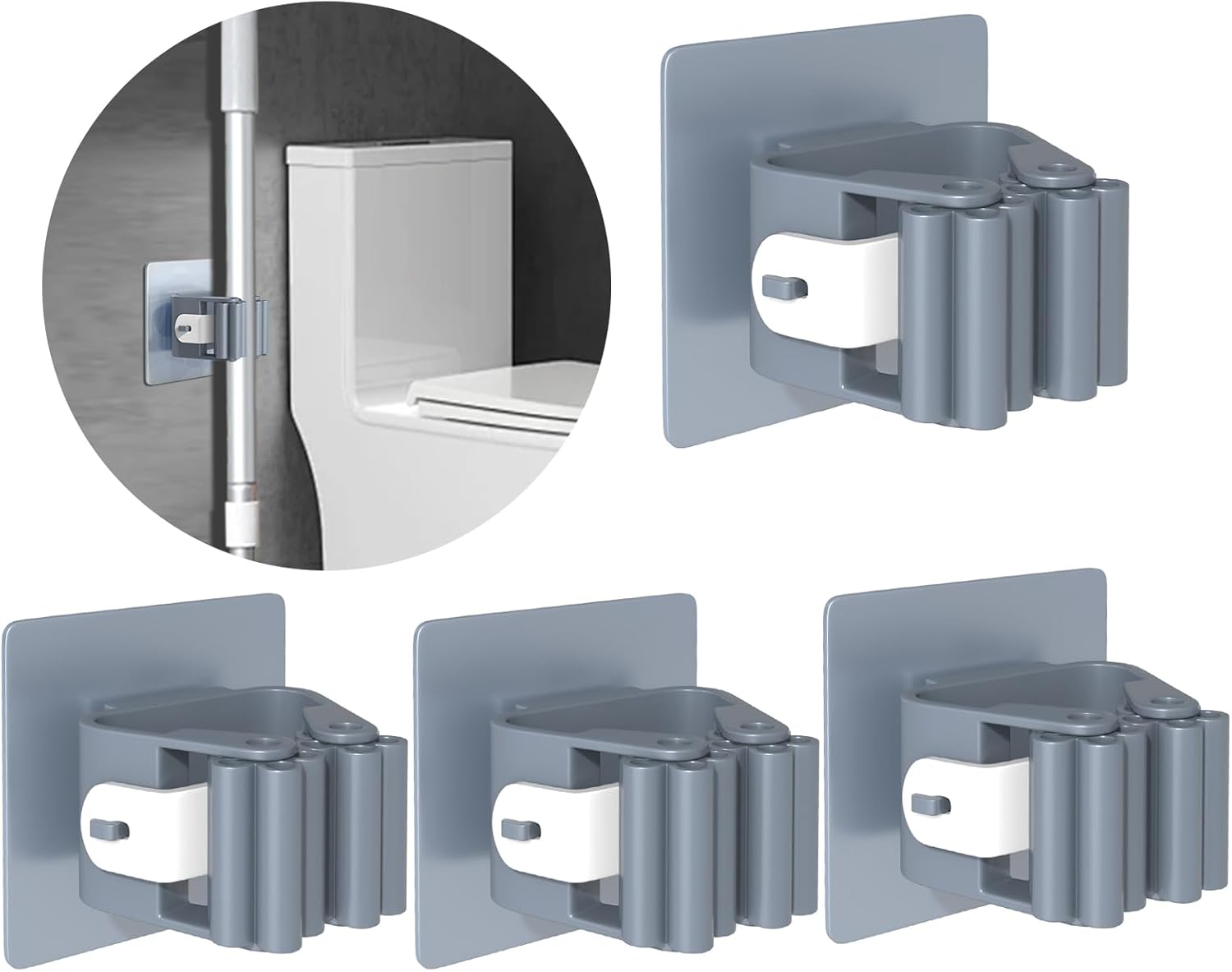 - ✅【4-Pack Heavy Duty Broom Holder】Securely organize 4 brooms, mops, or tools with industrial adhesive backing. Holds up to 10 lbs on tile, wood, or painted walls - no drilling, screws, or damage!