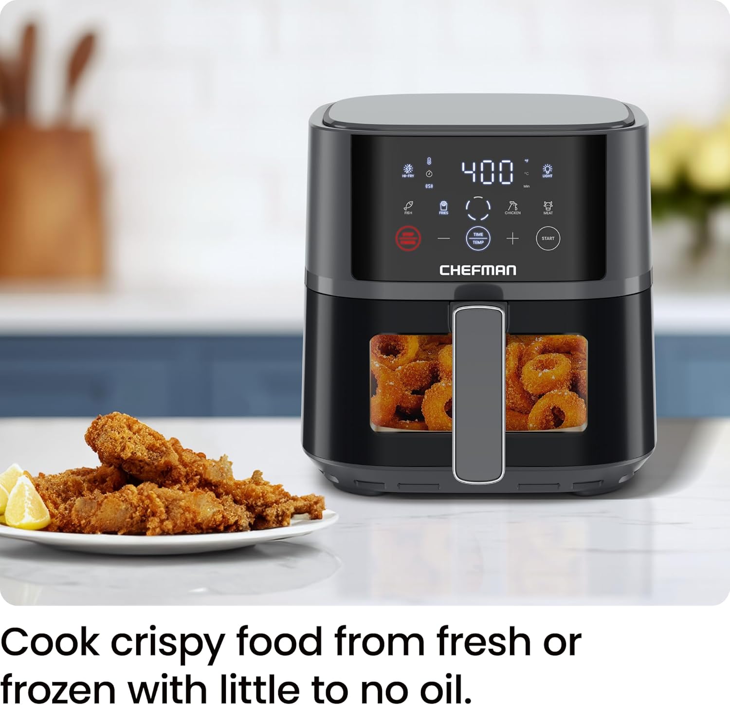 - HEALTHY COOKING: Enjoy delicious meals with little-to-no oil. This Chefman small air fryer lets you cook healthier, low-fat meals that still taste amazing.