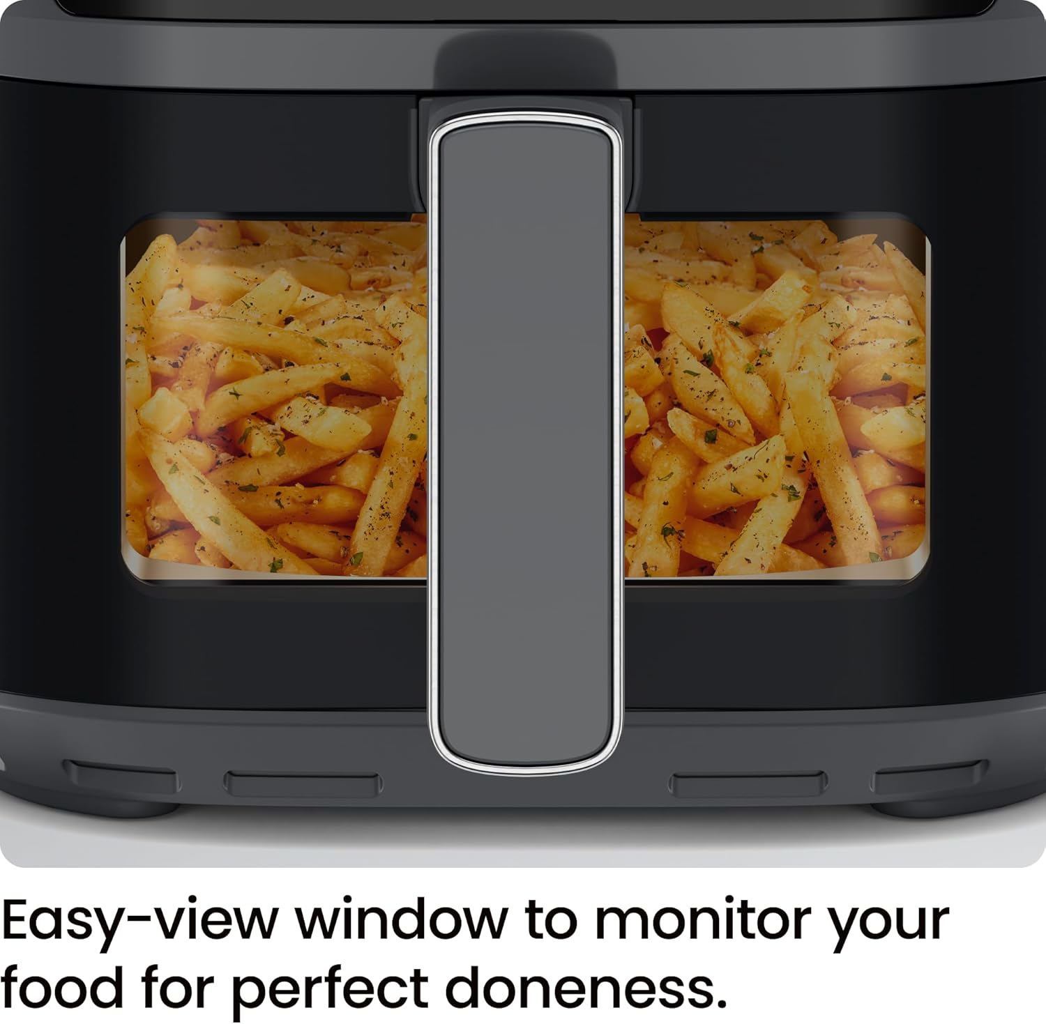 - EASY-VIEW WINDOW: Watch your food fry to your ideal finish. The integrated cooking window on the basket ensures that you can see just how crispy your food gets with only a fraction of the cooking oil.