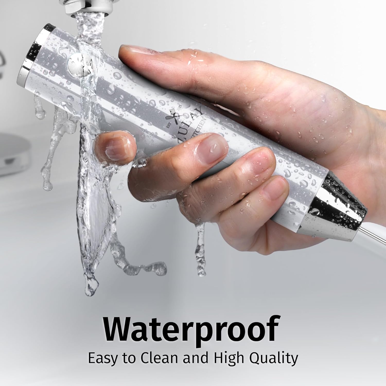 Zulay Kitchen Lux Rechargeable Milk Frother Handheld - Powerful 2-Speed Motor, Fully Waterproof, 2000mAh Battery - Drink Mixer For Latte, Cappuccino, Matcha, Protein Powder - Silver