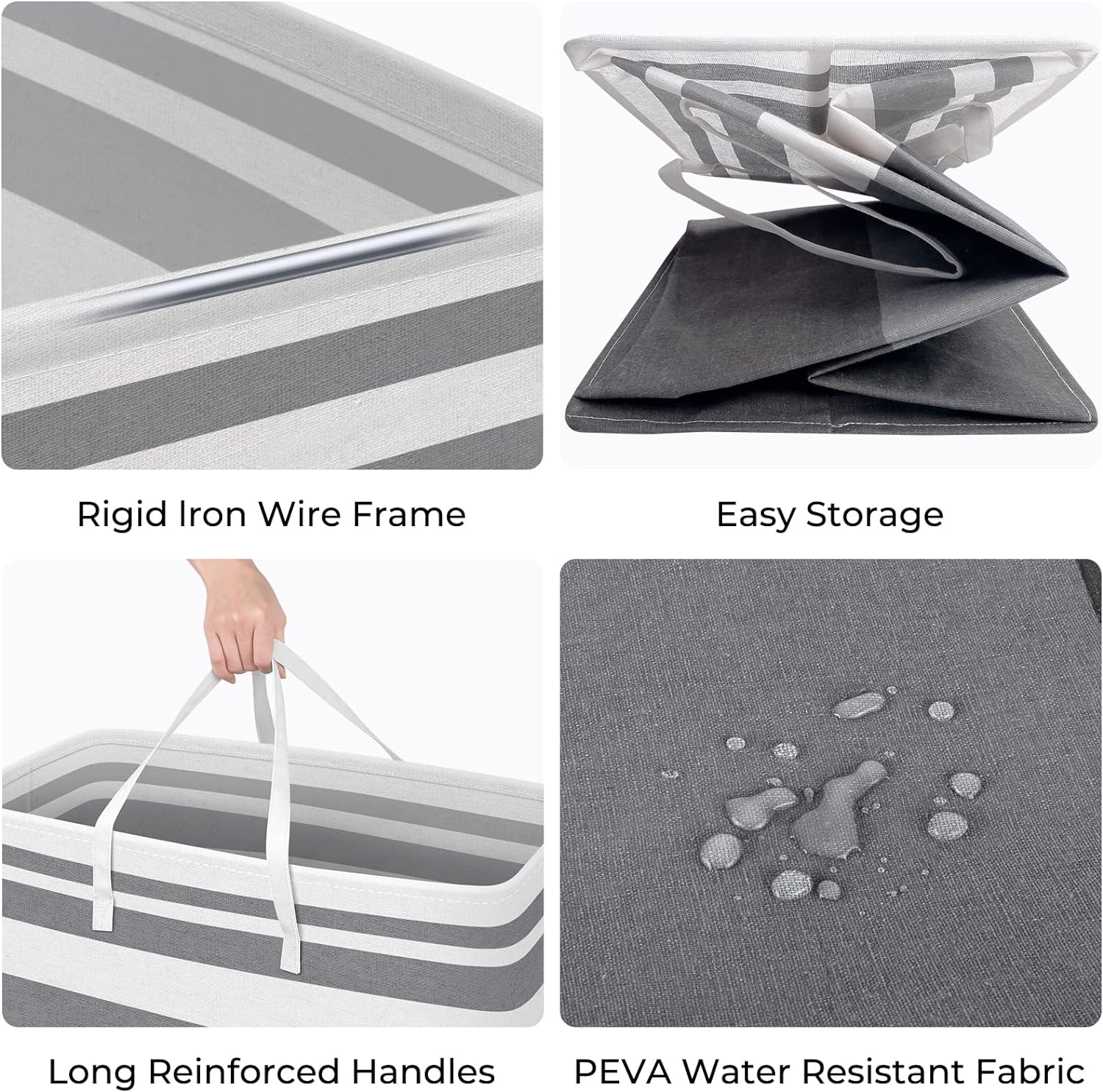 - Freestanding Structure:A sturdy metal frame is embedded in the top edges of the HomeHacks hamper basket so the laundry basket stands firmly upright even when empty.