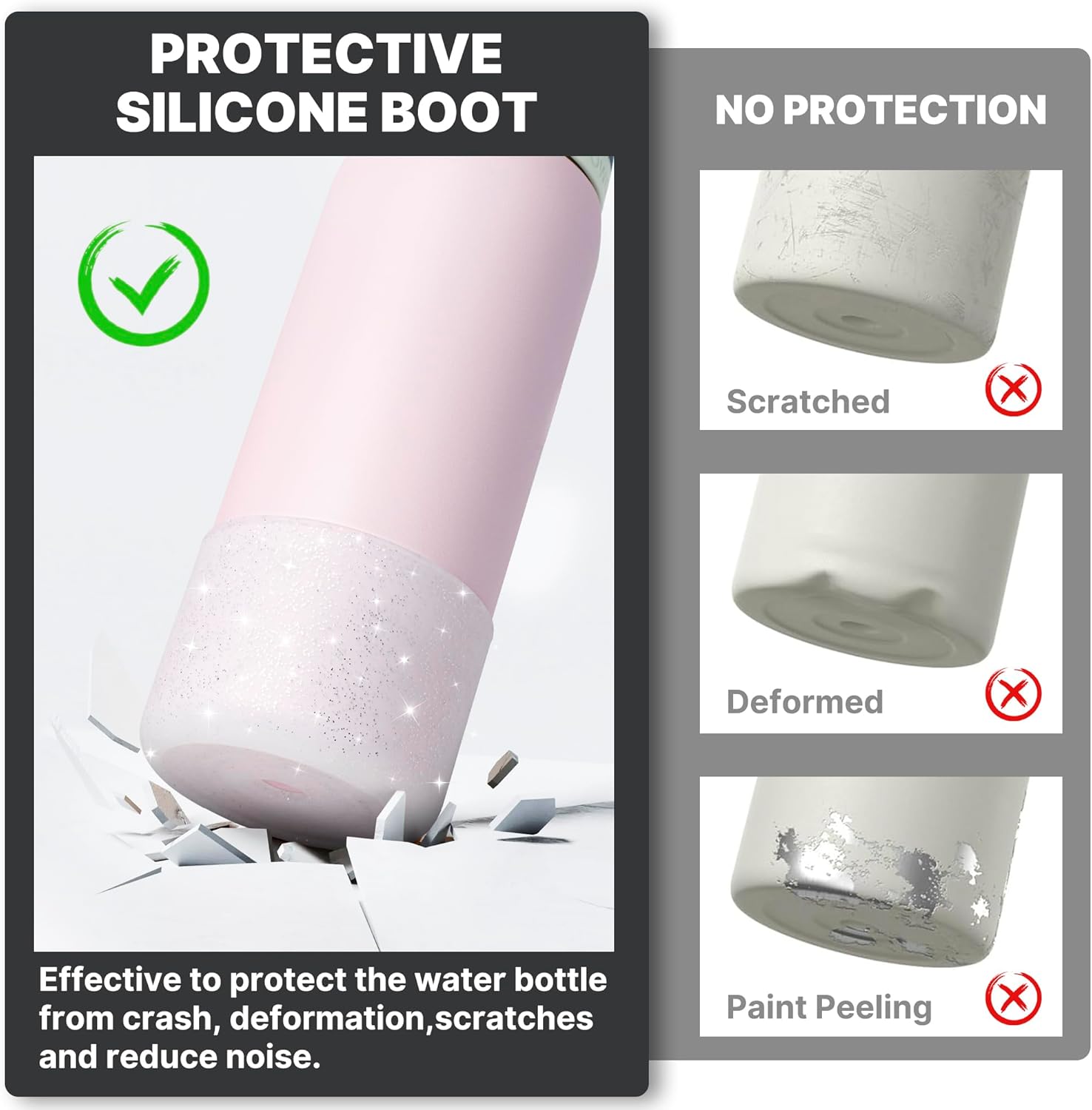 - ALL-AROUND PROTECTION: Your expensive water bottle deserves the best protection. This silicone boot helps resist the wear and tear of everyday life, drops and fading, your water bottle will always look like brand new! No more embarrassing noises when placing your water bottle on your desktop.