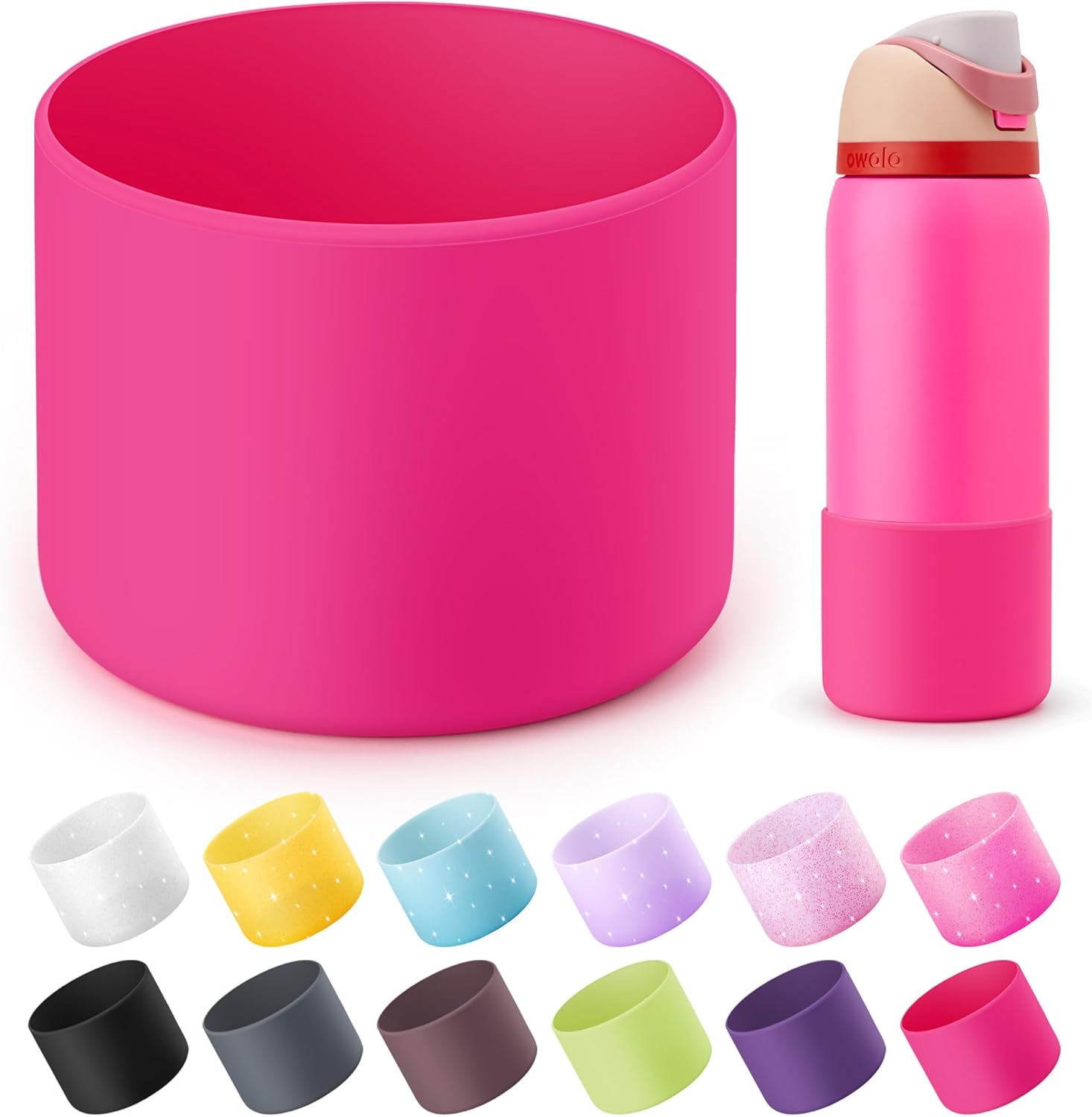 - COMPATIBILITY: Silicone sleeve fit for Owala 32oz Twist/Free Sip/Flip stainless steel water bottles. NOT intended for use with tritan plastic water bottles(Boot Size: 3.35inch bottom diameter, 1.89 inch high).