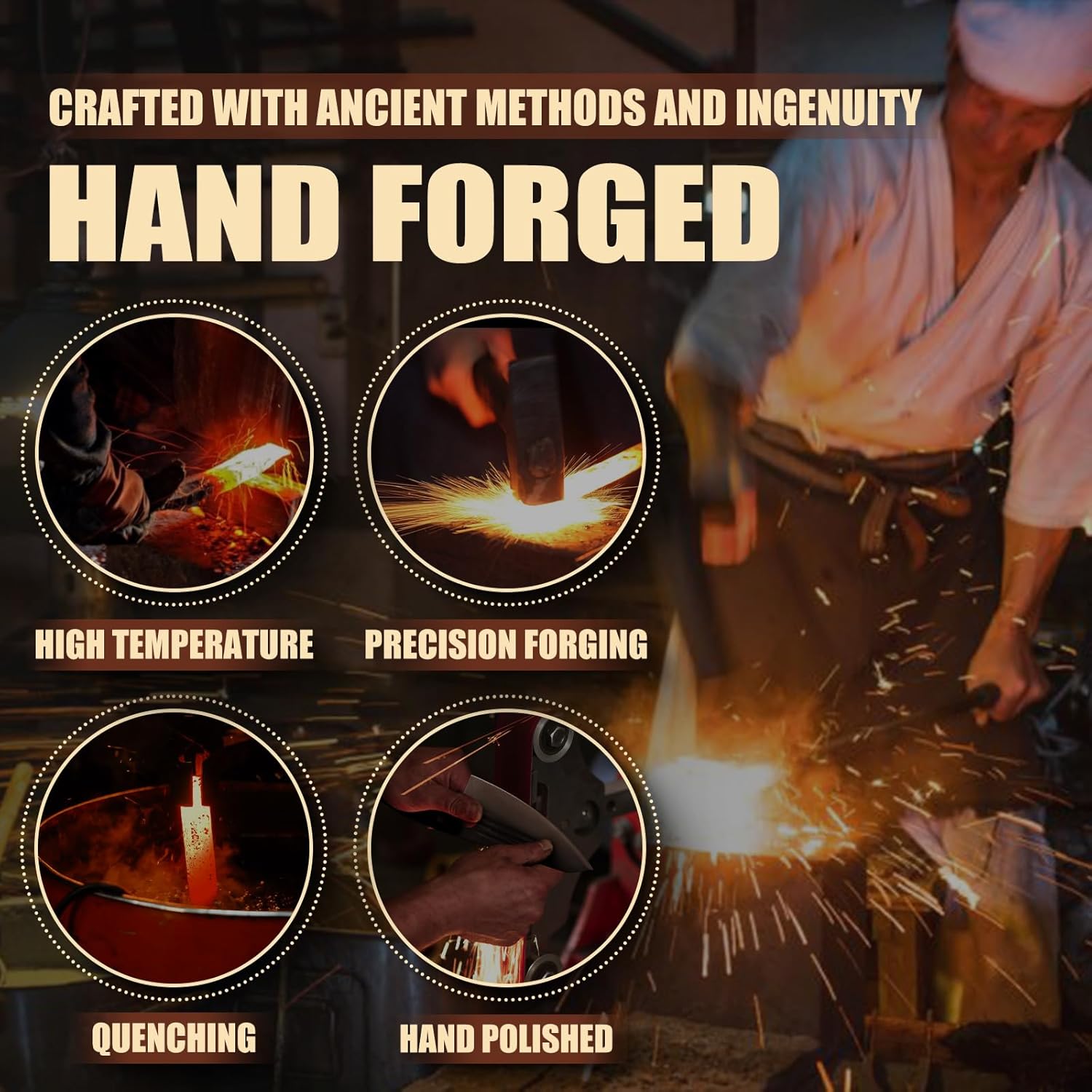 - OUTSTANDING QUALITY: The last kitchen knife set you will ever need. Our premium knives are made of the ultra-tough carbon steel ATS-34, and precision forged by experienced masters, the steel is repeatedly heated, folded and hammered, quenched and finely polished in multiple processes to make its internal structure uniform, ensuring the sharpness and stability of the blade. Nitrogen cooled for enhanced hardness and flexibility.