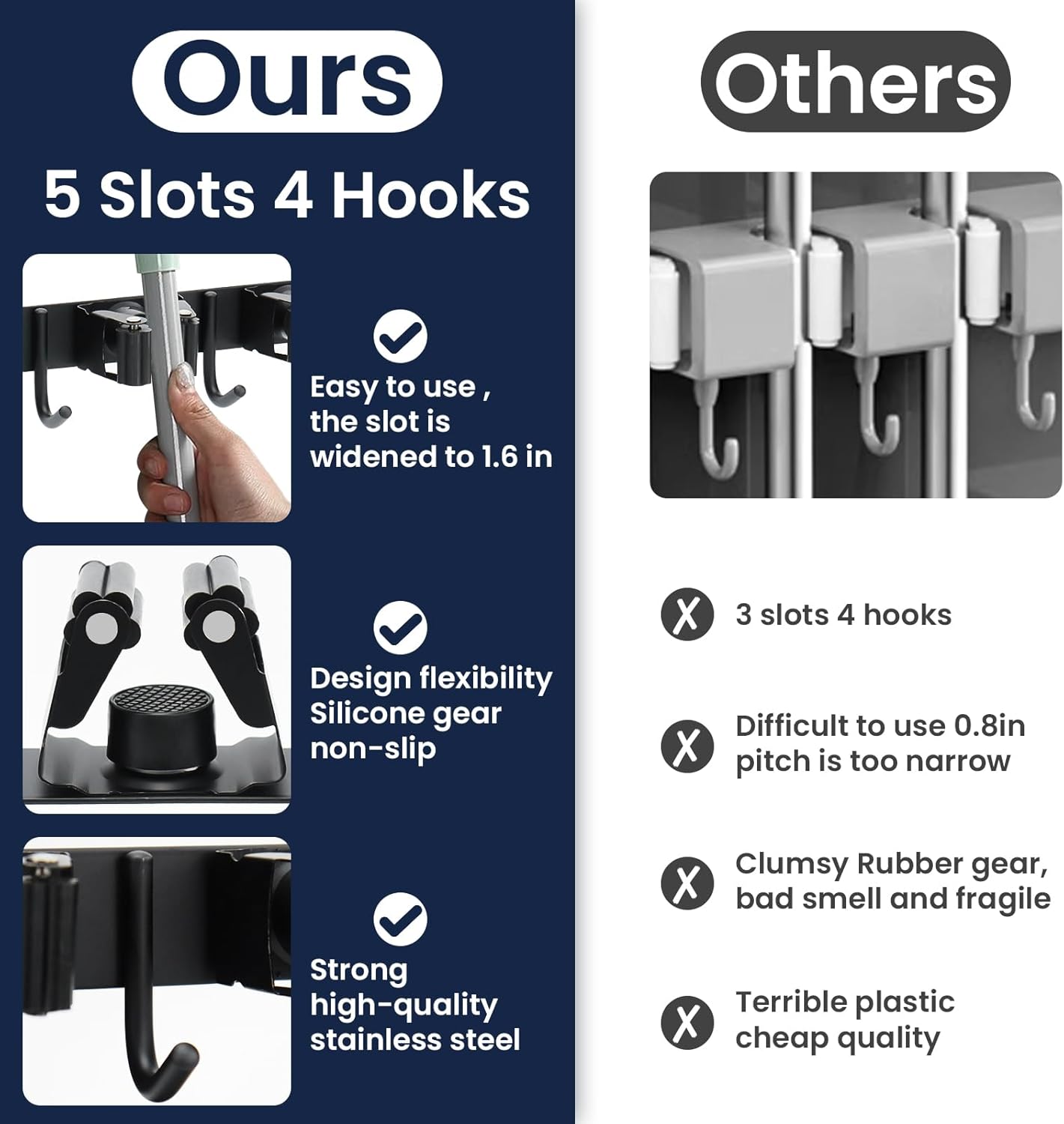 - CUSTOMER SERVICE: You can buy it with confidence.Your satisfactory is our prior pursue,if you have any problems with our broom rack wall mount, please do not hesitate to contact us, we are glad to replacement or refund even if missed the return window.