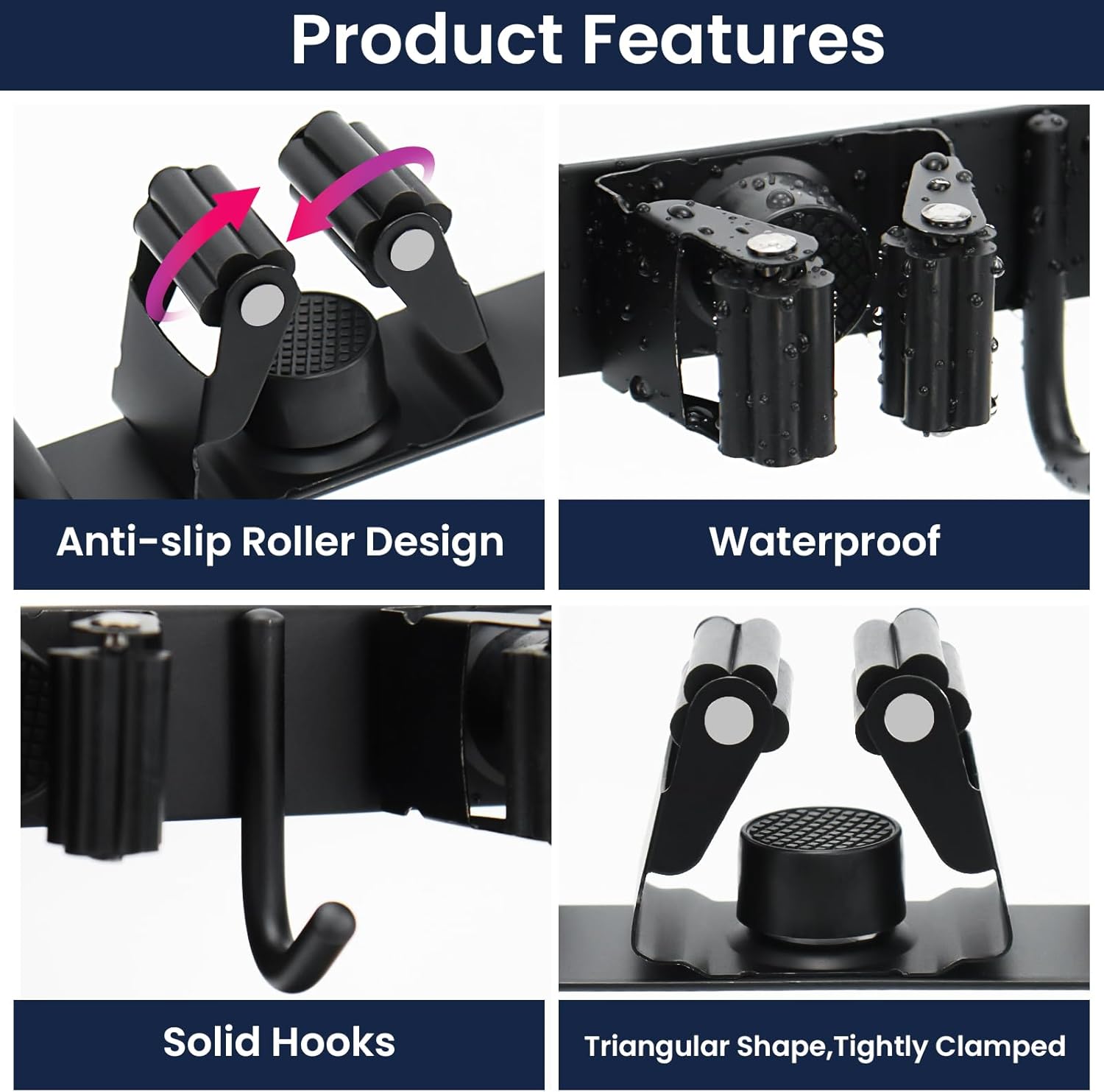 - EASE OF INSTALLATION: You can easily mount this broom rack on most flat wall surfaces with included hardware and instruction. This broom wall holder adopts rubber rollers to hold the broom/mop handles, more firmly and security. Never worry about hurt your hands, you can insert and remove the handles with one hand easily.