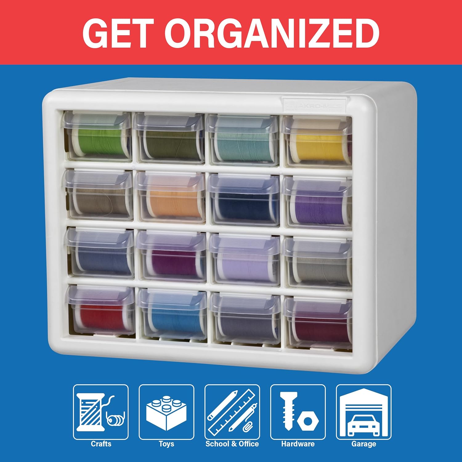 Akro-Mils 16-Drawer Plastic Drawer Storage Cabinet for Garage Organization, Beads, Makeup Organizer, Building Bricks Storage, Teacher Toolbox, 10-1/2" W x 6-1/2" D x 8-1/2" H, 10116 White