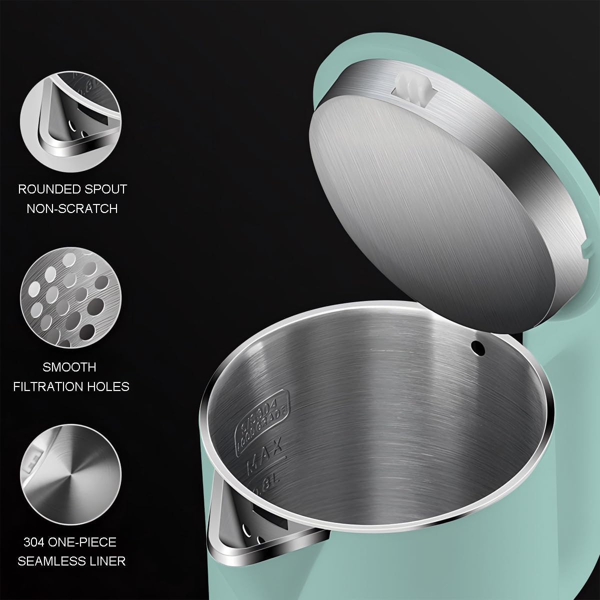 - ☑️【EASY CLEAN AND STORAGE】Large opening kettle, measure 4.2 inches (106 mm) diameter, hands can be easily put in to clean. The cord store base both can be removed from cordless kettle for easy storage.WARM TIPS - During use it many times, there maybe produce rusty spots in the bottom of the pot, pls don't worry about it, and it is not product quality problem, just because of the local water, you can use the vinegar to clean it.