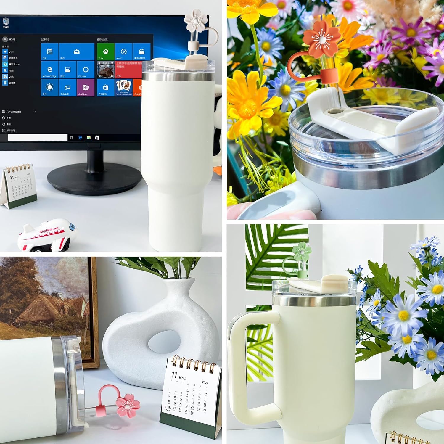 Flower Straw Covers Cap Fit for Stanley Cup, 8Pcs Silicone Flower Straw Toppers Compatible for Stanley 30&40 Oz Tumbler, 10mm Drinking Straw Tip Covers Fit for Stanley Cups Accessories