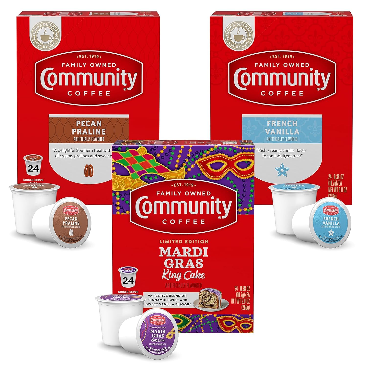 Community Coffee Flavored Pods Variety Pack,72 Count, Medium Roast and Flavored, Compatible with Keurig 2.0 K-Cup Brewers (24 Count, Pack of 3)
