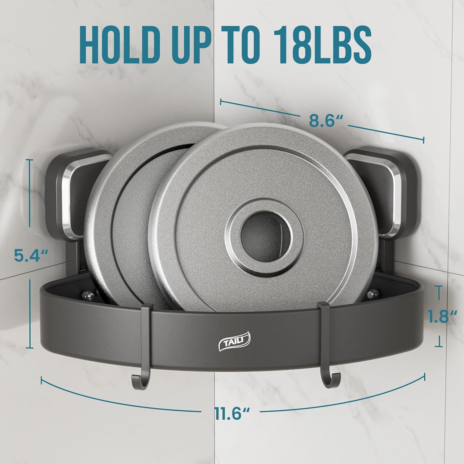 TAILI Corner Shower Caddy with Suction Cup Hooks, Aluminum Corner Shelf Basket, Wall Mounted Organizer Rack for Shampoo, No-Drilling Rustproof for Kitchen and Bathroom