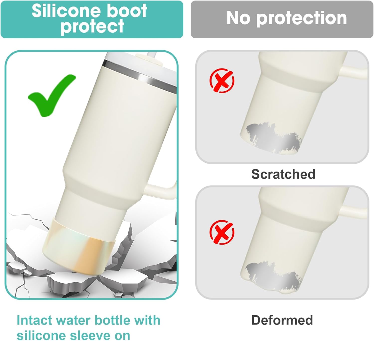 - 【Excellent Protection】Still worried about broken, scratched bottoms of your favorite stainless steel water bottles? Or embarrassed by the clinking sound the bottle makes on the table? This silicone sleeve for Stanley can effectively protect the bottom of the bottle from depression, scratch, skid resistance and noise.