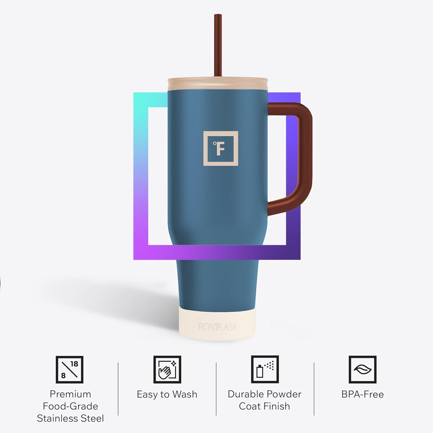 IRON °FLASK Co-Pilot Insulated Mug w/Boot, Straw & Flip Cap Lids - Cup Holder Bottle for Hot, Cold Drink - Leak-Proof - Water, Coffee Portable Travel Mug - Desert Oasis, 40 Oz