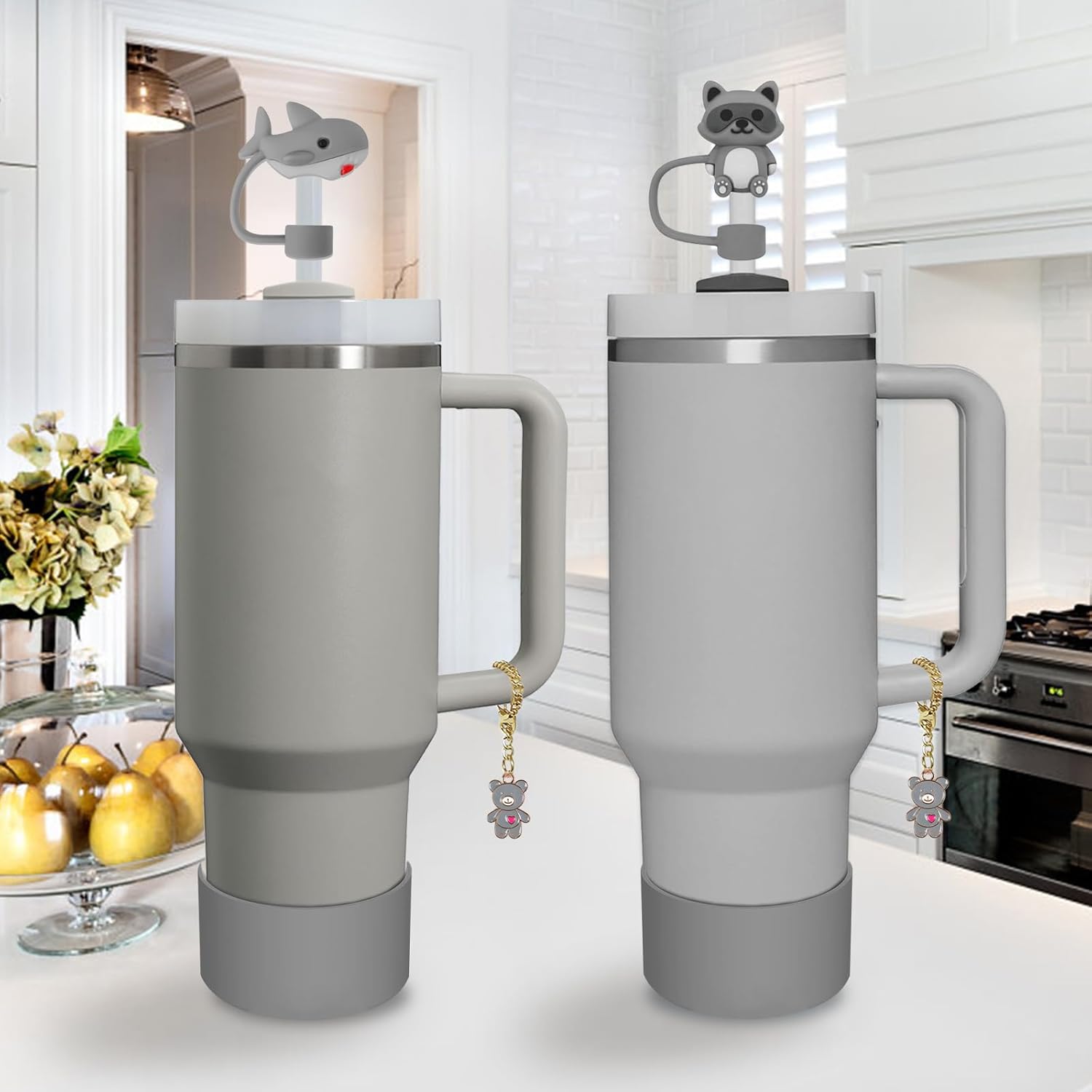 Stanley Cup Accessories Set,Including 2 Pcs 0.4in Straw Cover, 1 Silicone Spill-Proof Stopper, 1 Cute Handle Charm, 1 Silicone Boot Fits Stanley 40&30 Oz Tumbler (Grey)