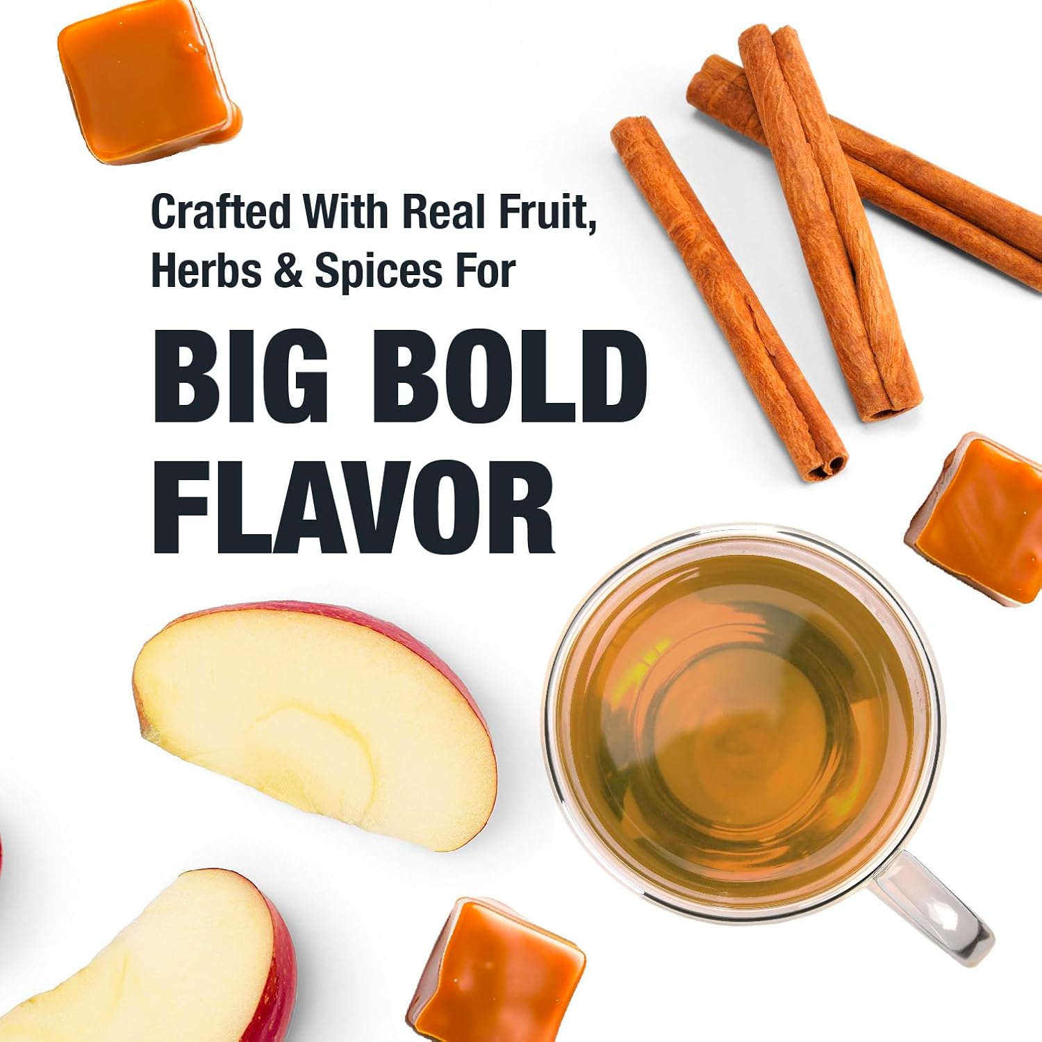 - PREMIUM LOOSE LEAF INGREDIENTS: This herbal tea features a unique blends of apple, white hibiscus, cinnamon, caramel pieces, and carefully selected flavors for a perfectly balanced taste. Chicory root and sweet blackberry leaves deepen the richness, while marigolds add a delicate floral touch. Made with real ingredients, this loose leaf tea is a flavorful choice for any time of day.