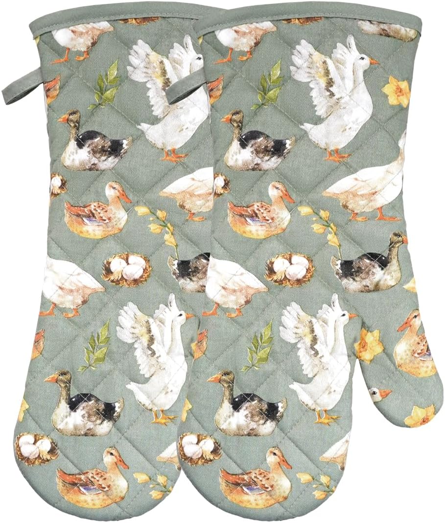 Oven Mitts Cotton Fashion Cute Teal Design 1pair Heat Resistant Oven Gloves Safe Cooking Baking Grilling Barbecue Machine Washable Pot Holders (Teal)